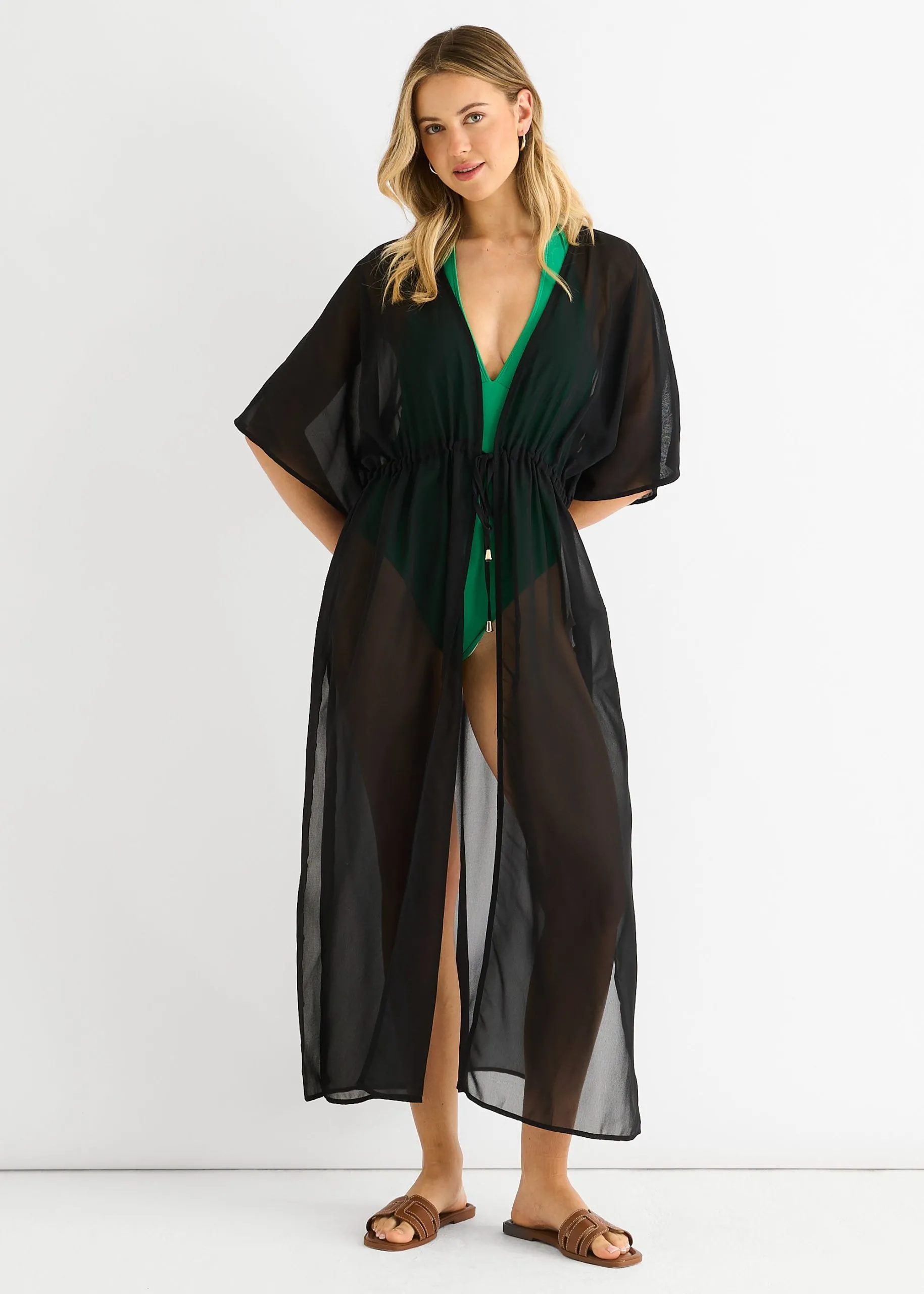 Sale!Black Flowy Open Front Beach Cover Kimono
