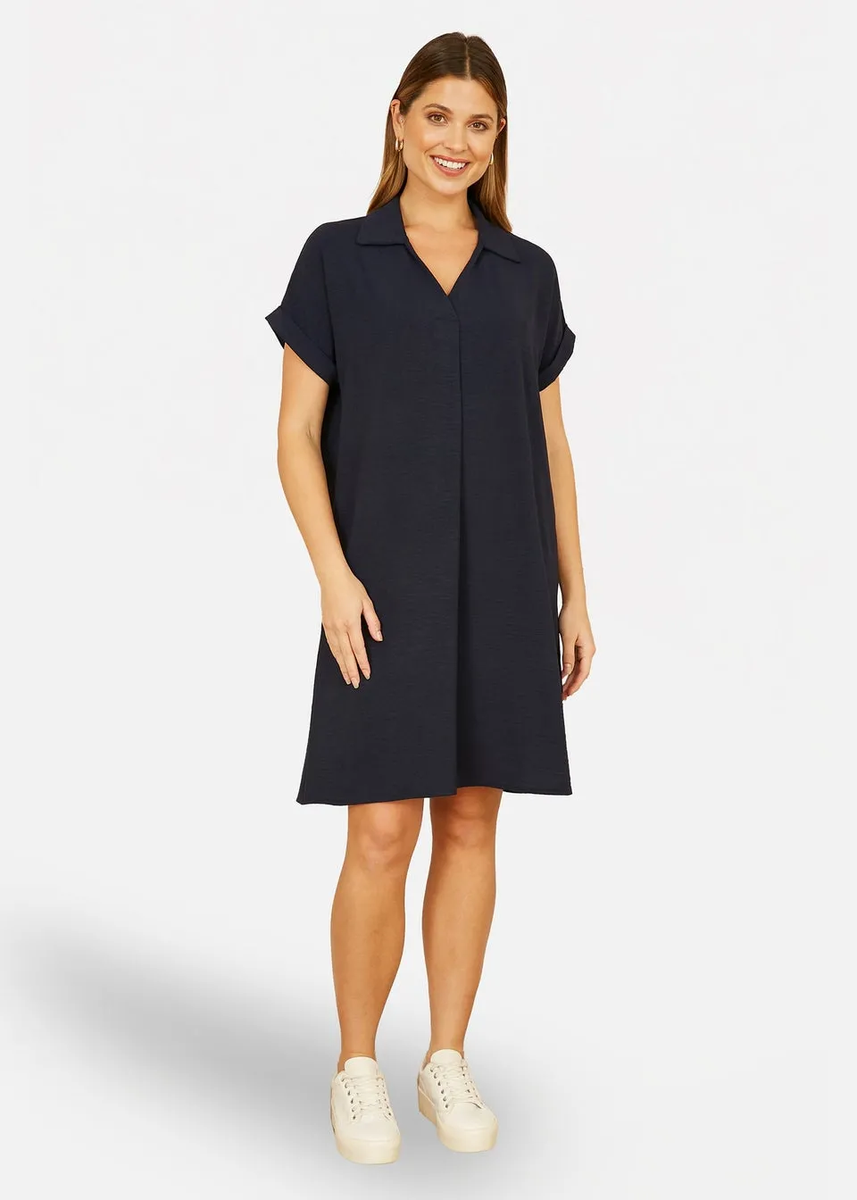 • Yumi Navy Relaxed Fit Collared Tunic Dress