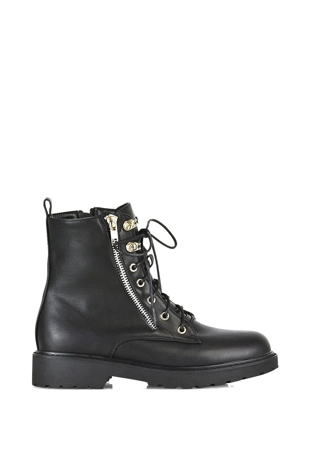 Sale!‘Halsey’ Flat Chunky Sole Lace up Biker Ankle Boots With Zip