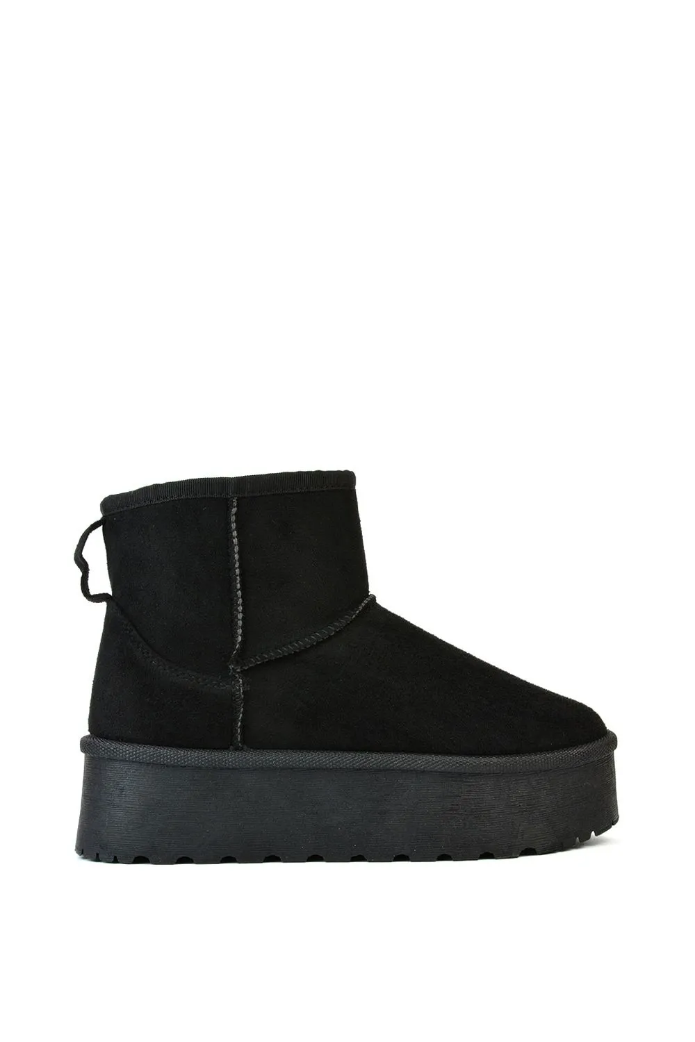 Sale!‘Evalyn’ Classic Mini Flat Platform Sole Faux Fur Lined Ankle Boots
