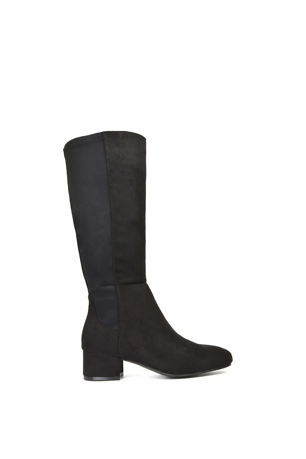 Sale!‘Hannah’ Low Block Heel Elasticated Calf Long Boots With Zip Fastening