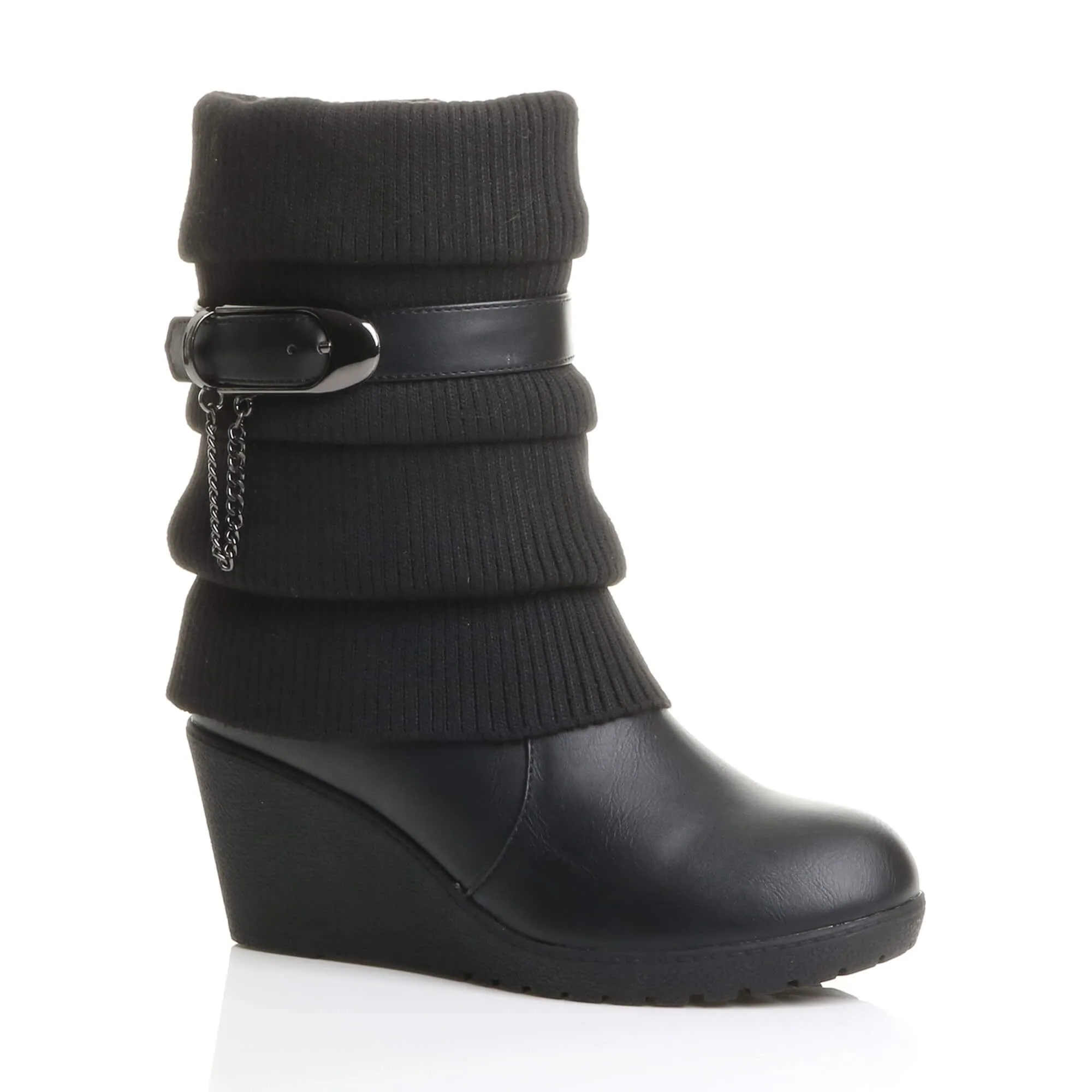 Sale!Mid Wedge Heel Slouch Faux Leather Ankle Boots