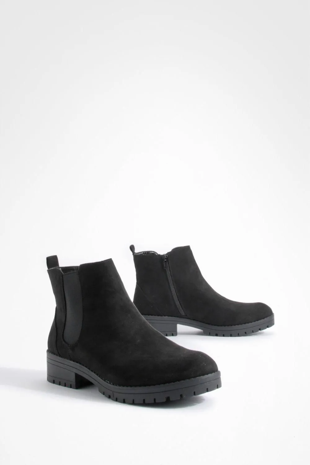 • Wide Fit Faux Suede Flat Chelsea Boots