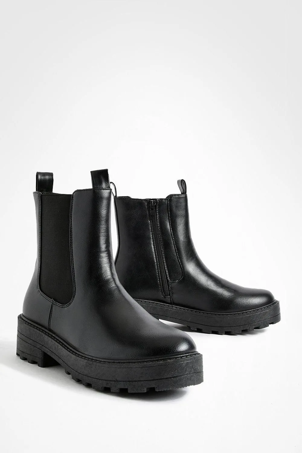Wide Fit Double Tab Detail Chunky Chelsea Boots