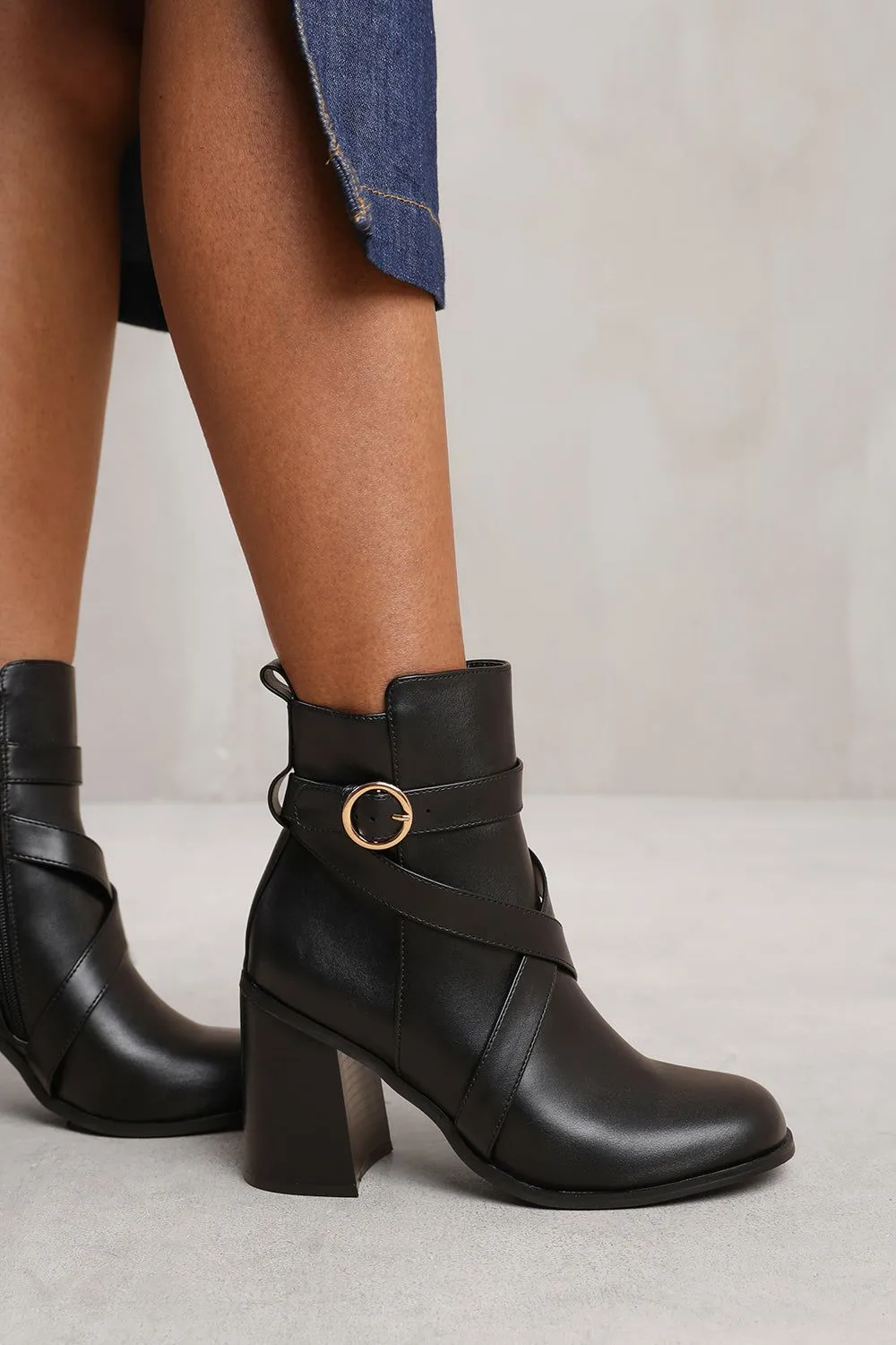 ‘Wren’ Ankle Boot With Chunky Heel And Cross Over Strap Detail