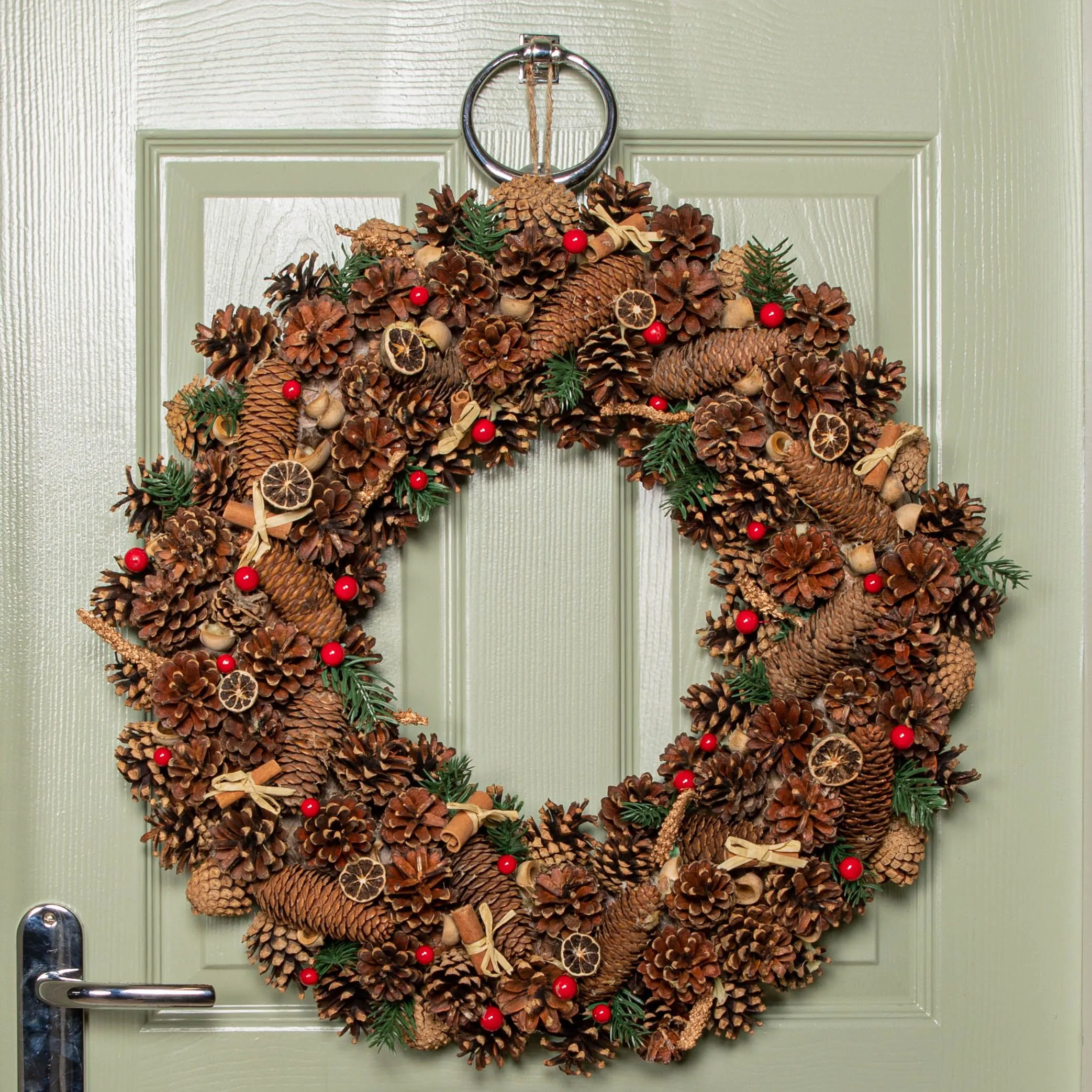 • 60cm Winter Spice Hanging Christmas Wreath with Pine Cones Red Berries & Dried Fruit