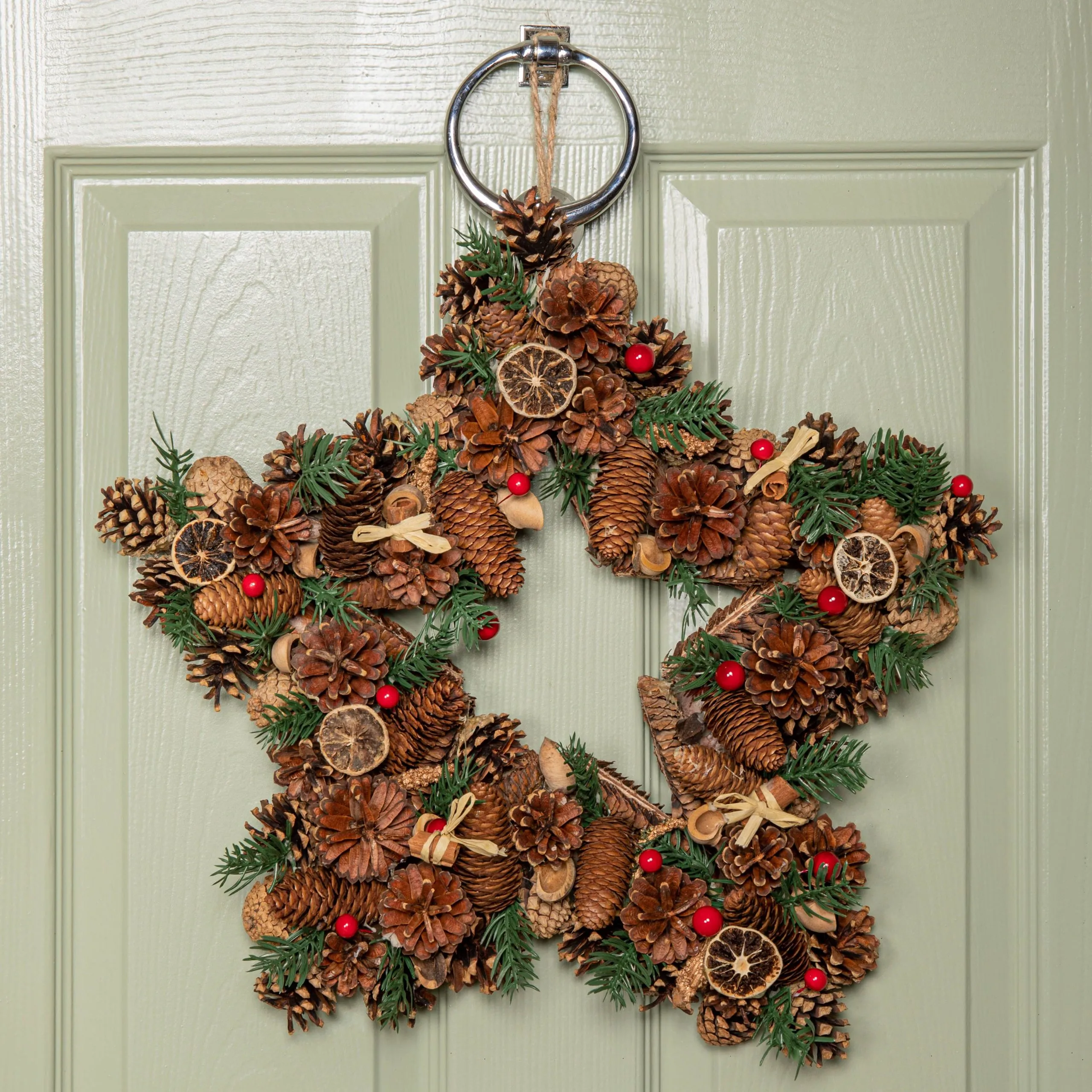45cm Winter Spice Star Hanging Christmas Wreath with Pine Cones Red Berries & Dried Fruit