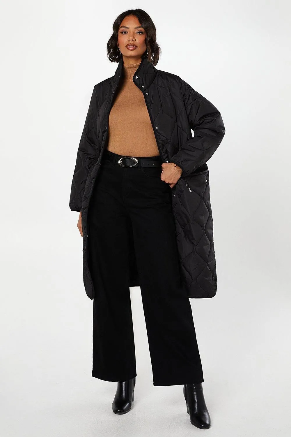 Sale!Drawstring Waist Quilted Padded Puffer Coat