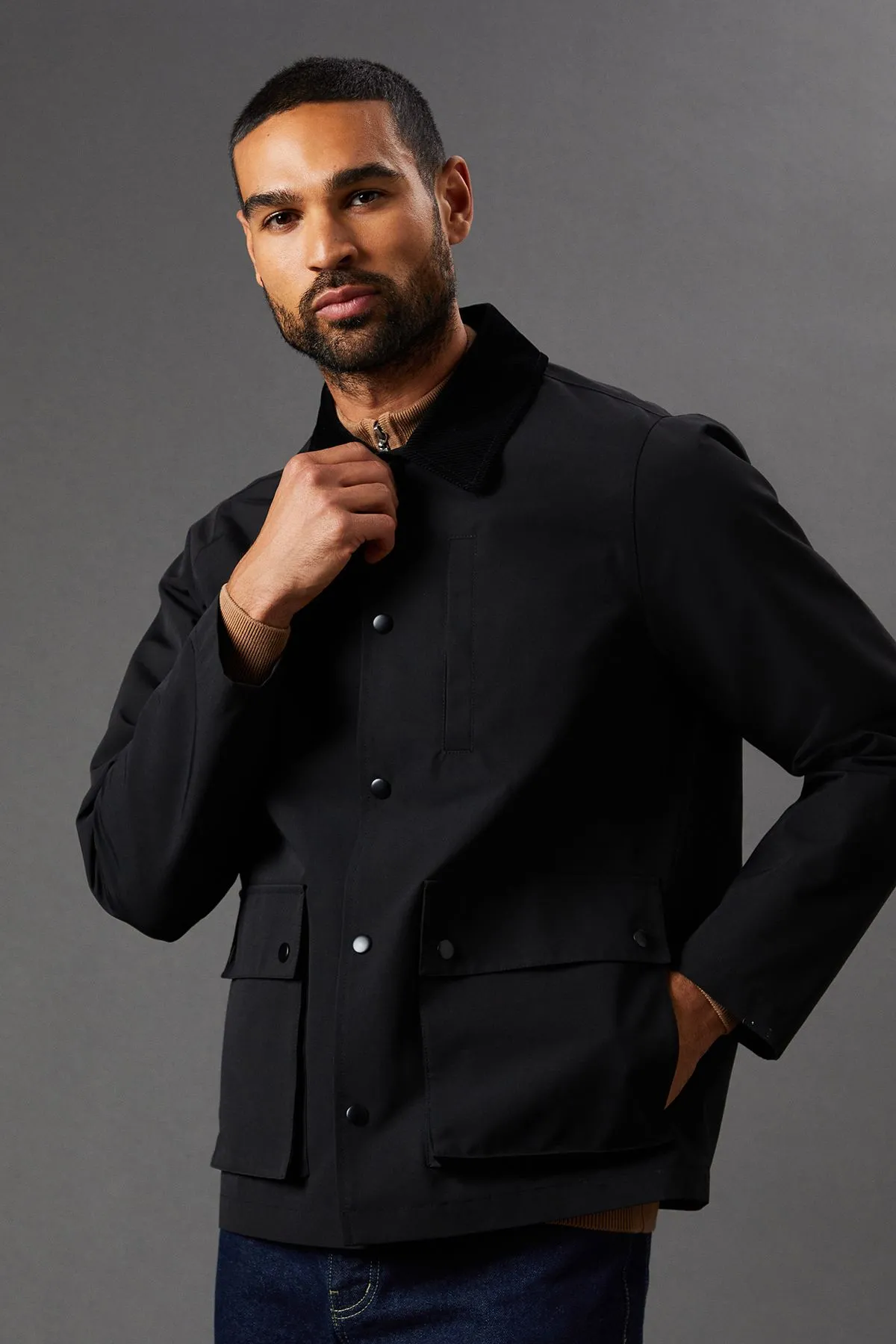 Sale!Black Cord Collar 3 Pocket Jacket