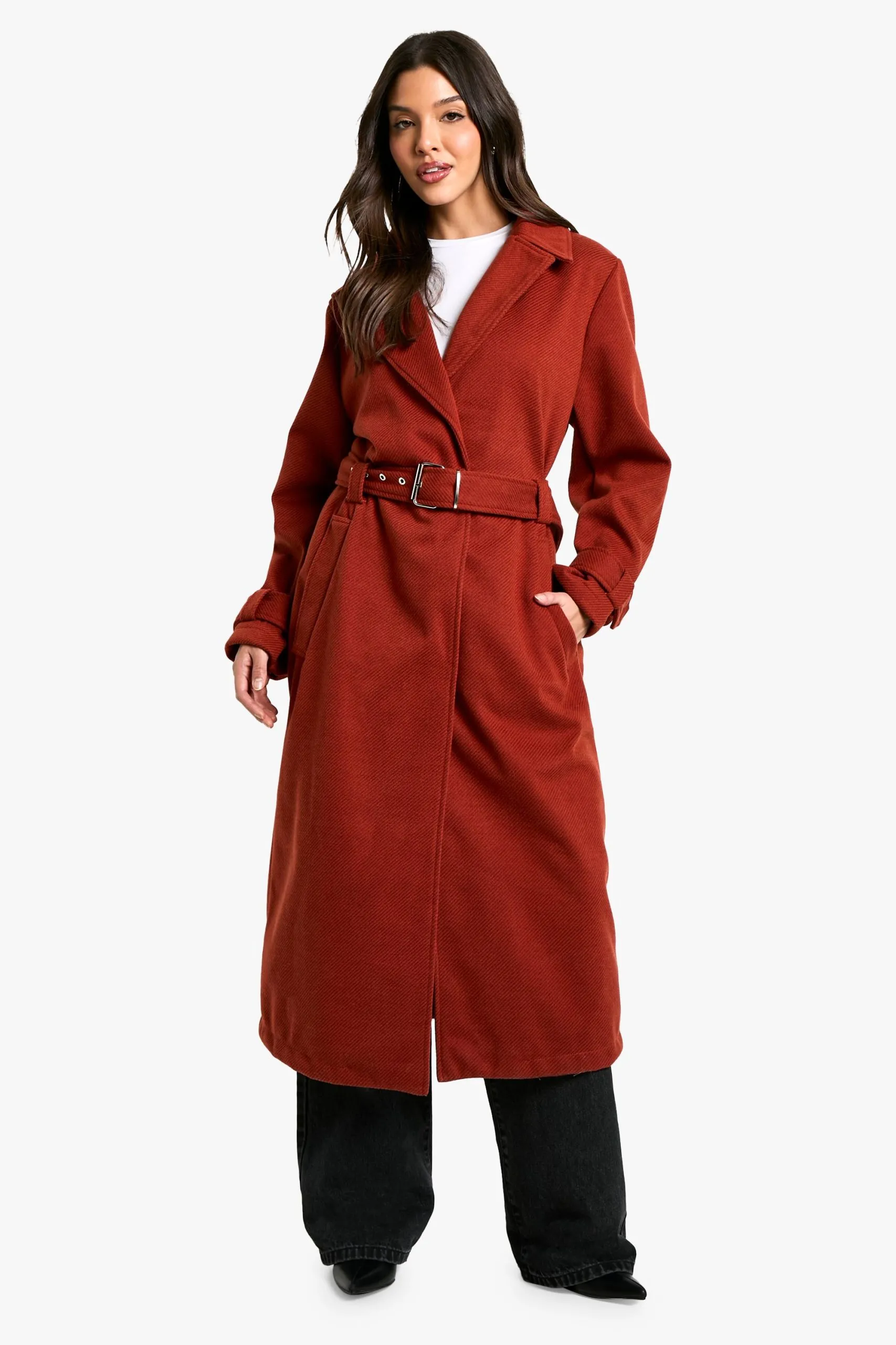 Sale!Belted Wool Look Maxi Coat