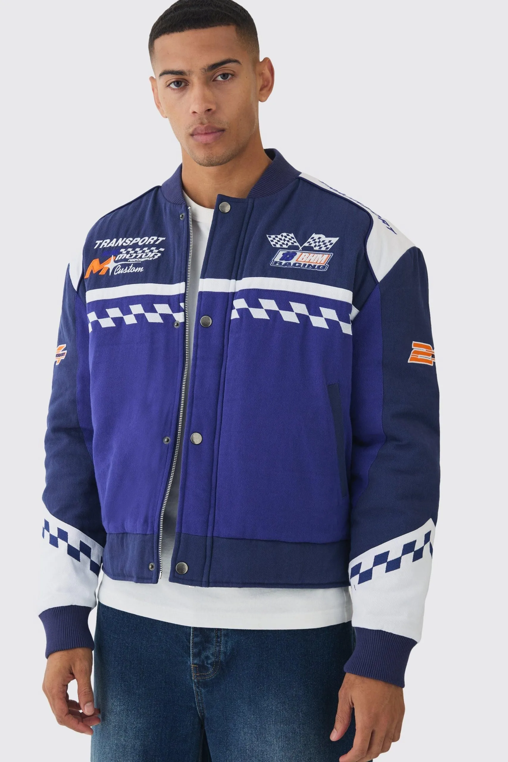 • Oversized Boxy Official Twill Padded Moto Jacket In Blue