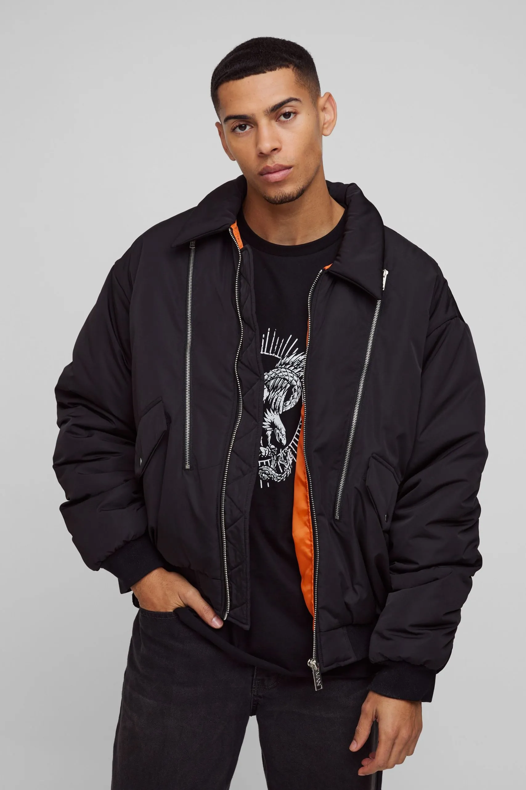 Oversized Boxy Official Twill Padded Moto Jacket In Blue