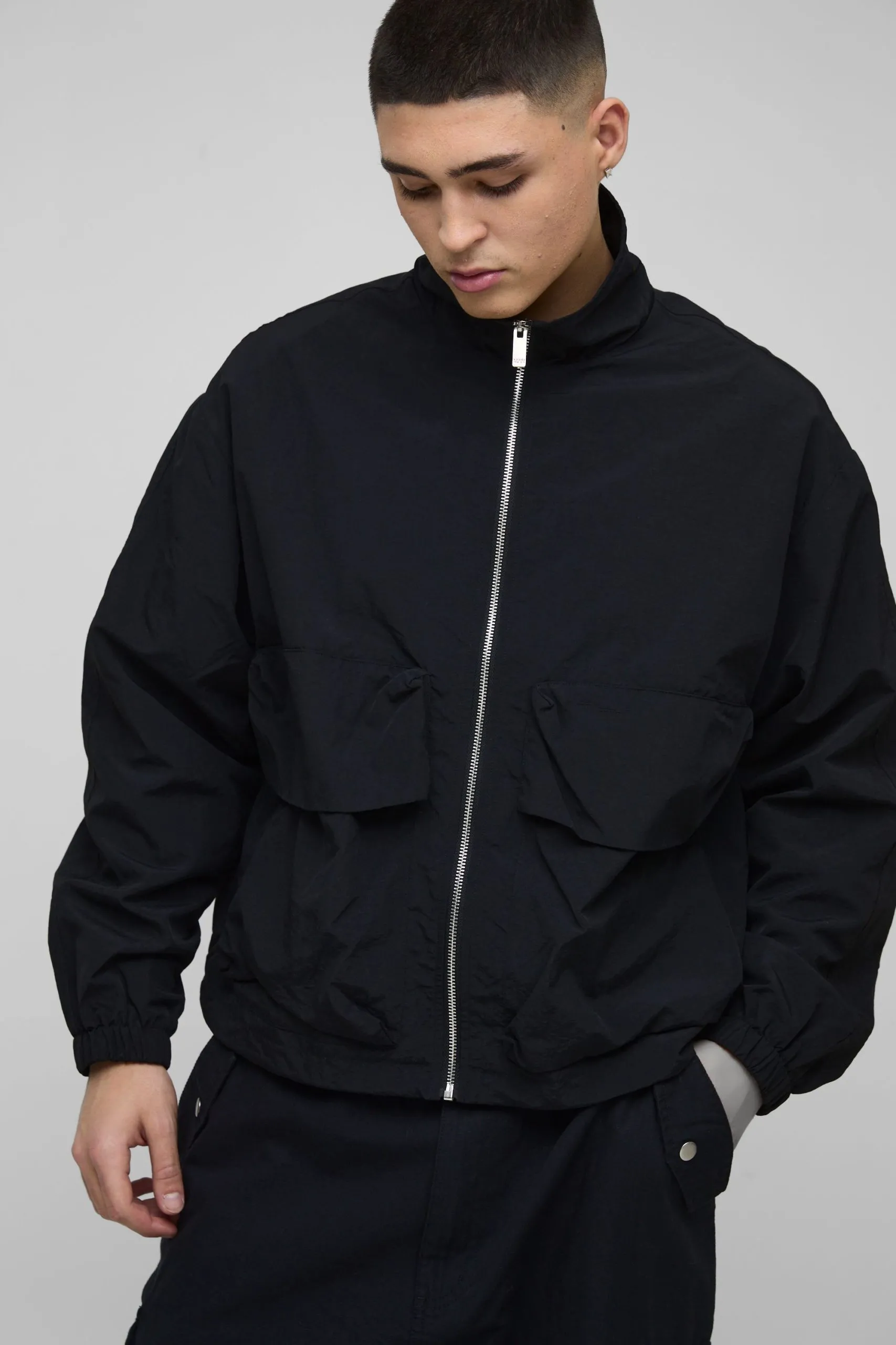 Oversized Boxy Crinkle Nylon Combat Track Jacket
