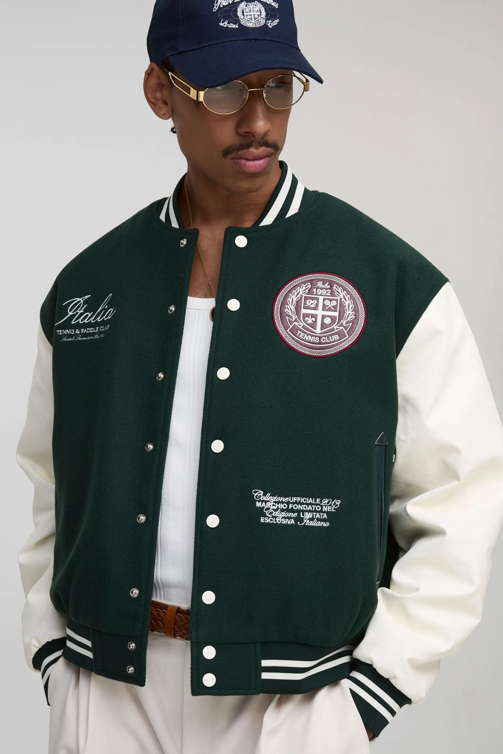 Oversized Boxy Melton Embroidered Bomber Jacket