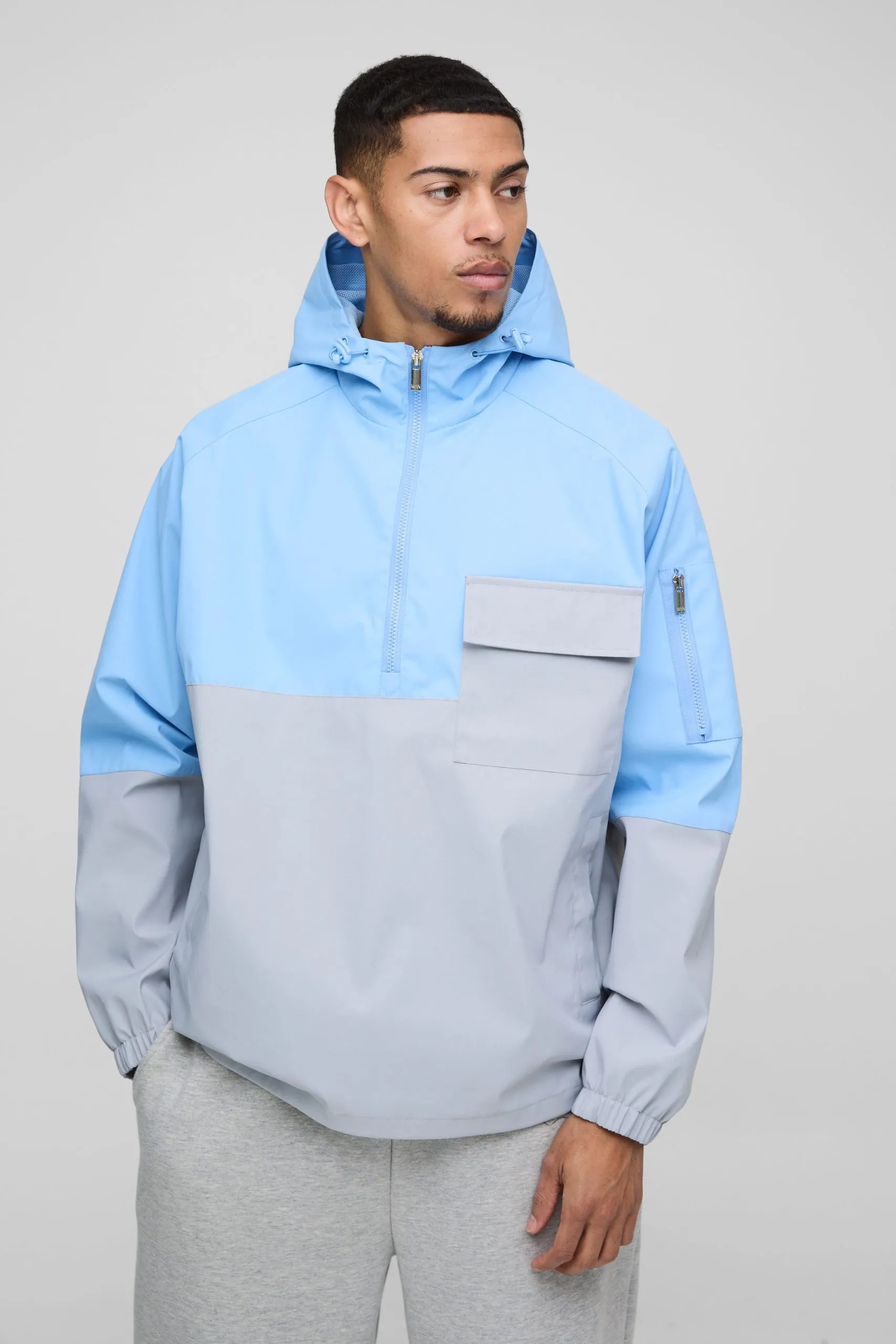 Sale!Oversized Colour Block Pocket Detail Hooded Cagoule Raincoat