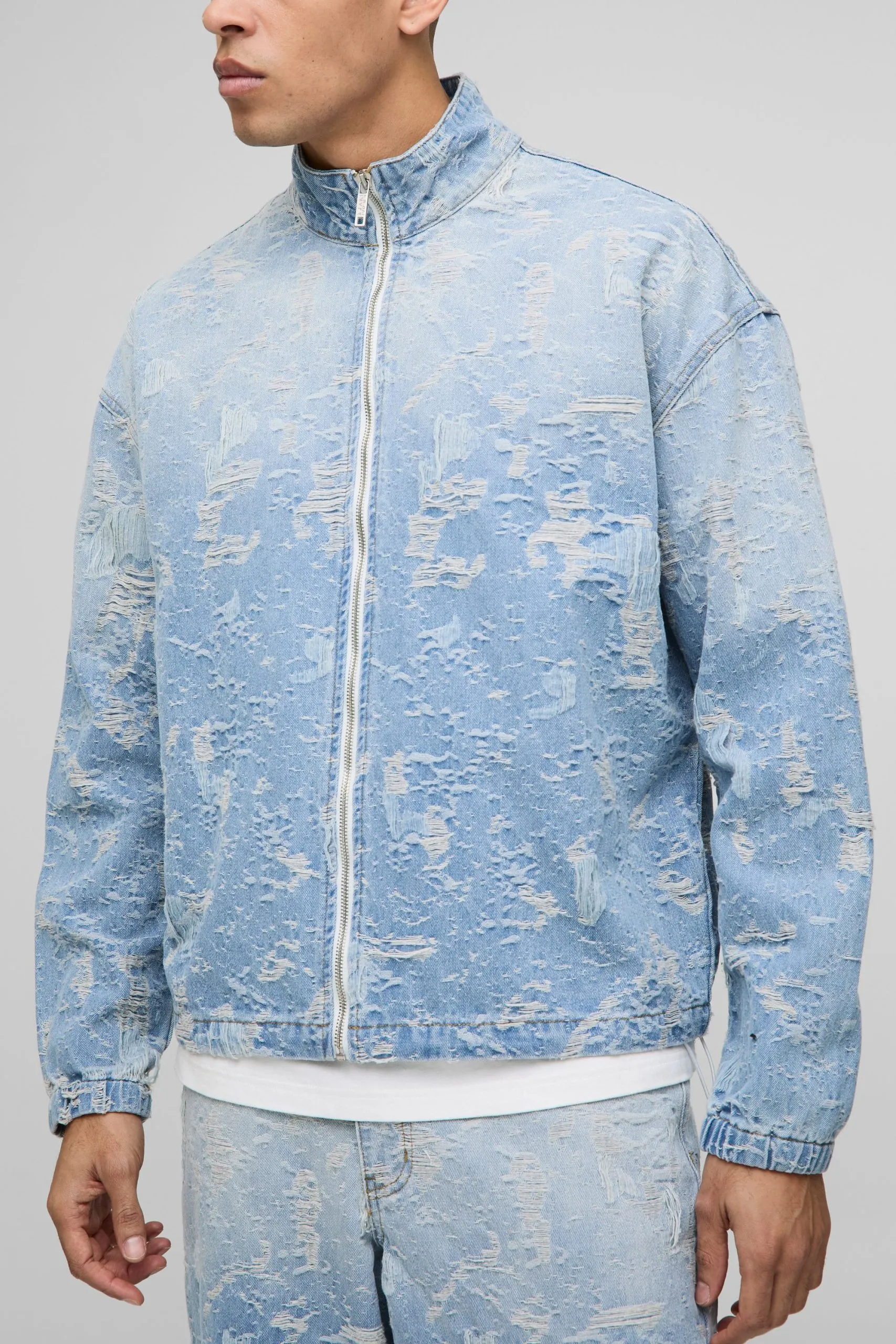 Sale!Oversized Funnel Neck Distressed Denim Jacket