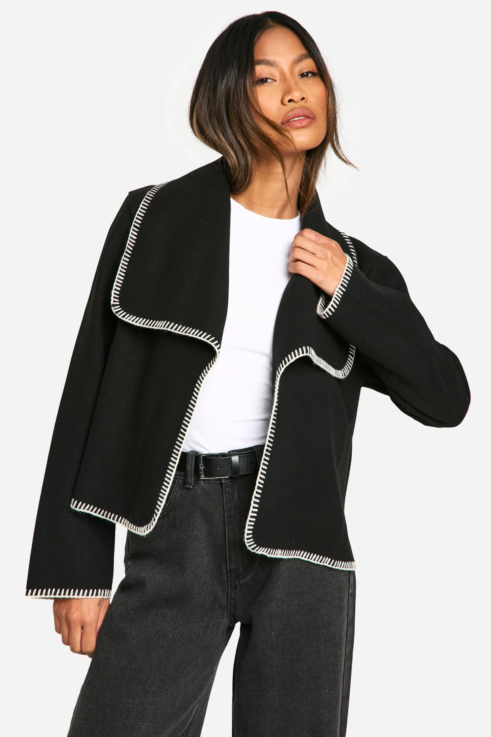 Sale!Blanket Stitch Waterfall Wool Look Jacket