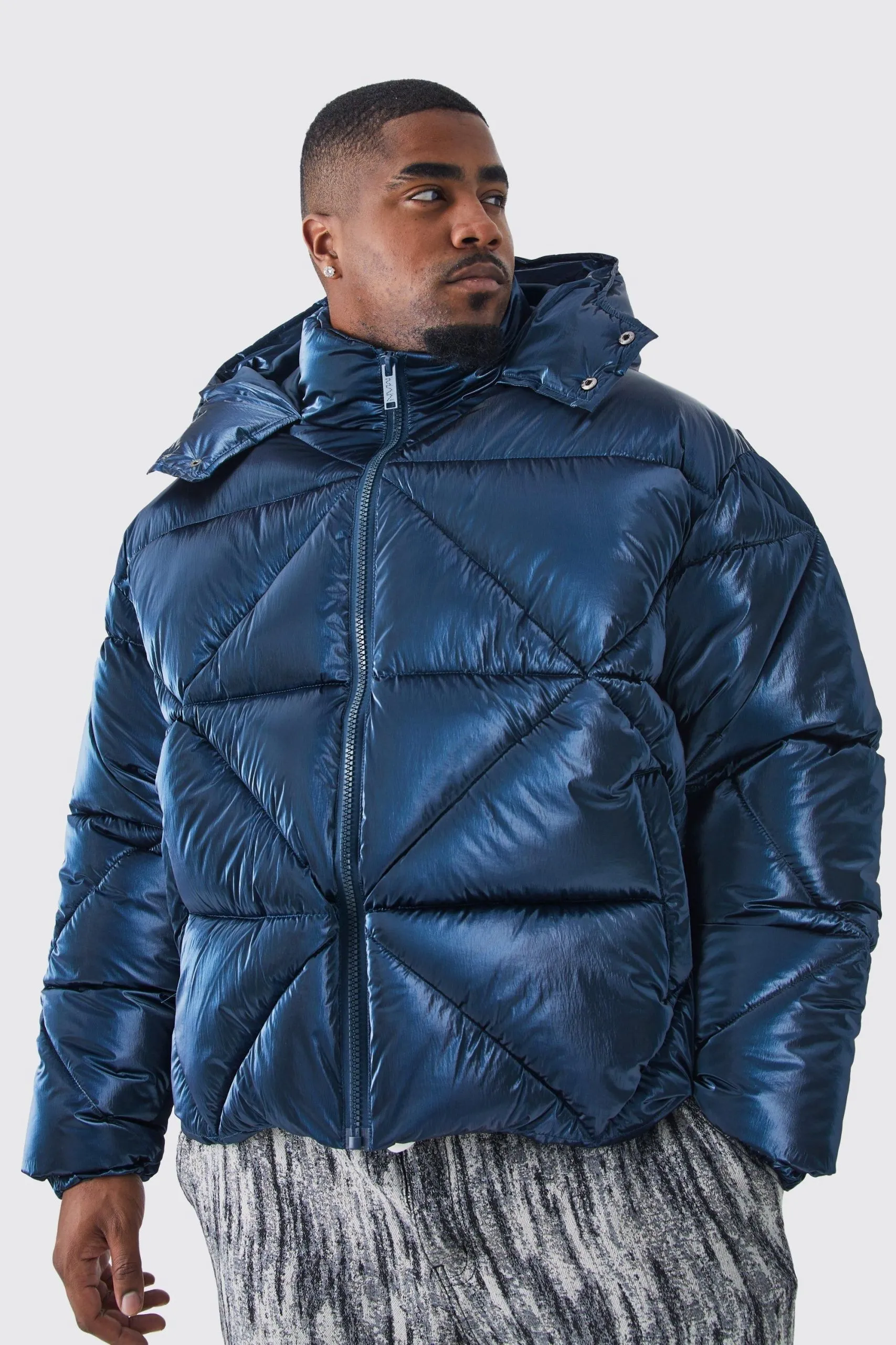 Sale!Plus Man Boxy Fit Funnel Neck Puffer Coat