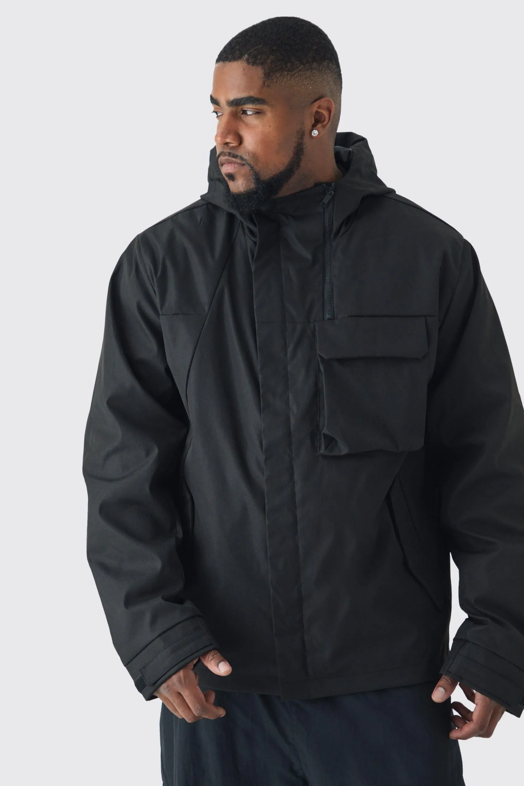 Sale!Plus Lightweight Hooded Regular Fit Parka Jacket In Black