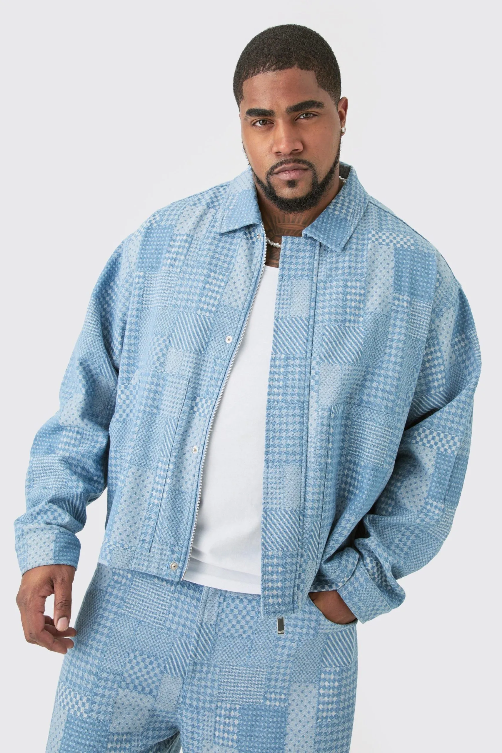 Sale!Plus Oversized Fit Fabric Interest Denim Jacket