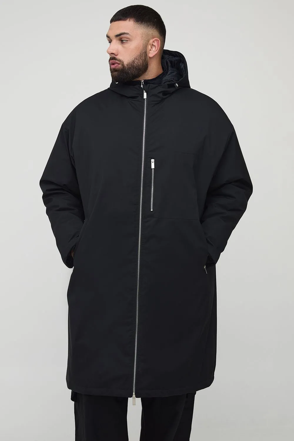 Sale!Plus Oversized Padded Tech Longline Mac In Black