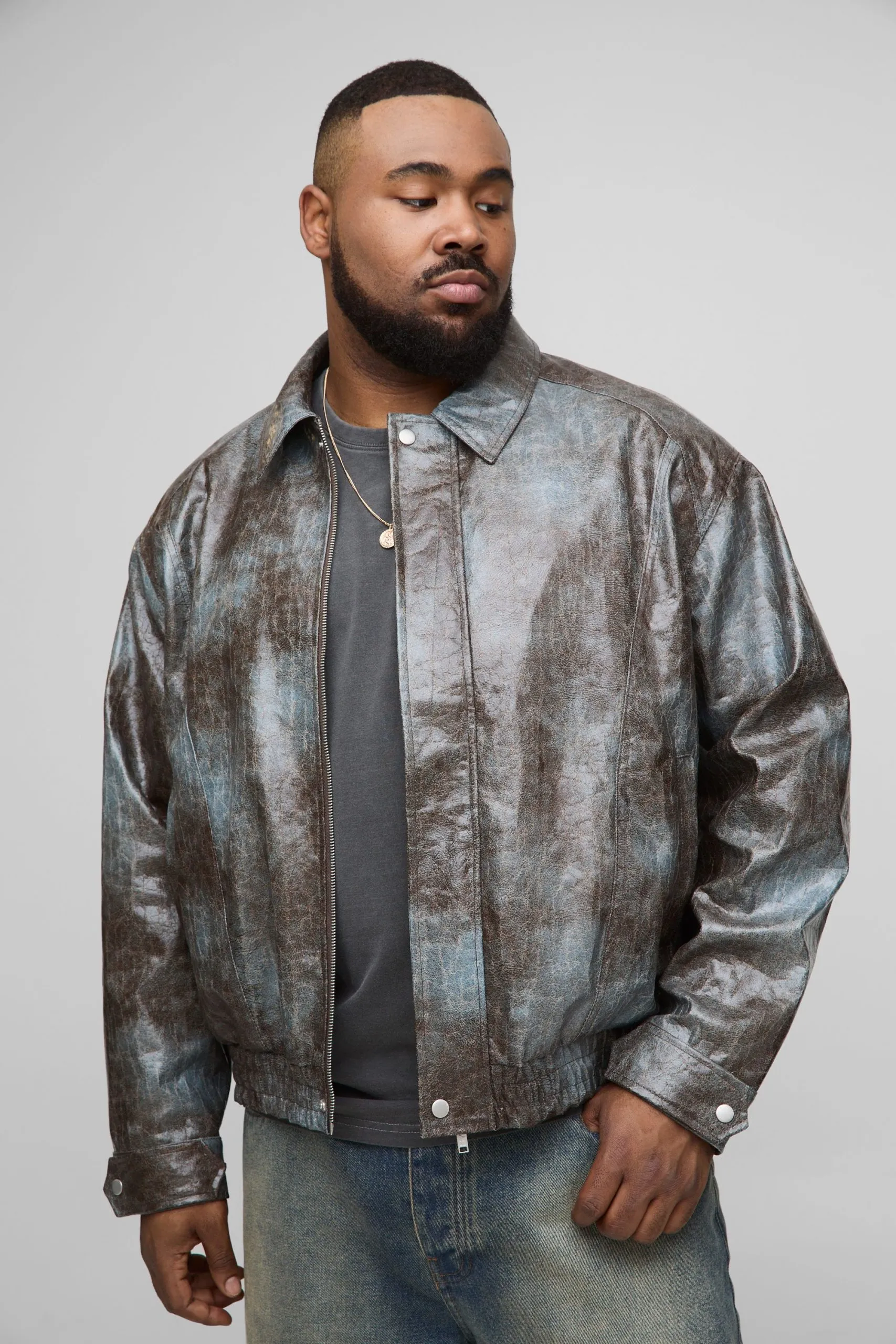 Sale!Plus Tie Dye Snake PU Boxy Bomber Jacket