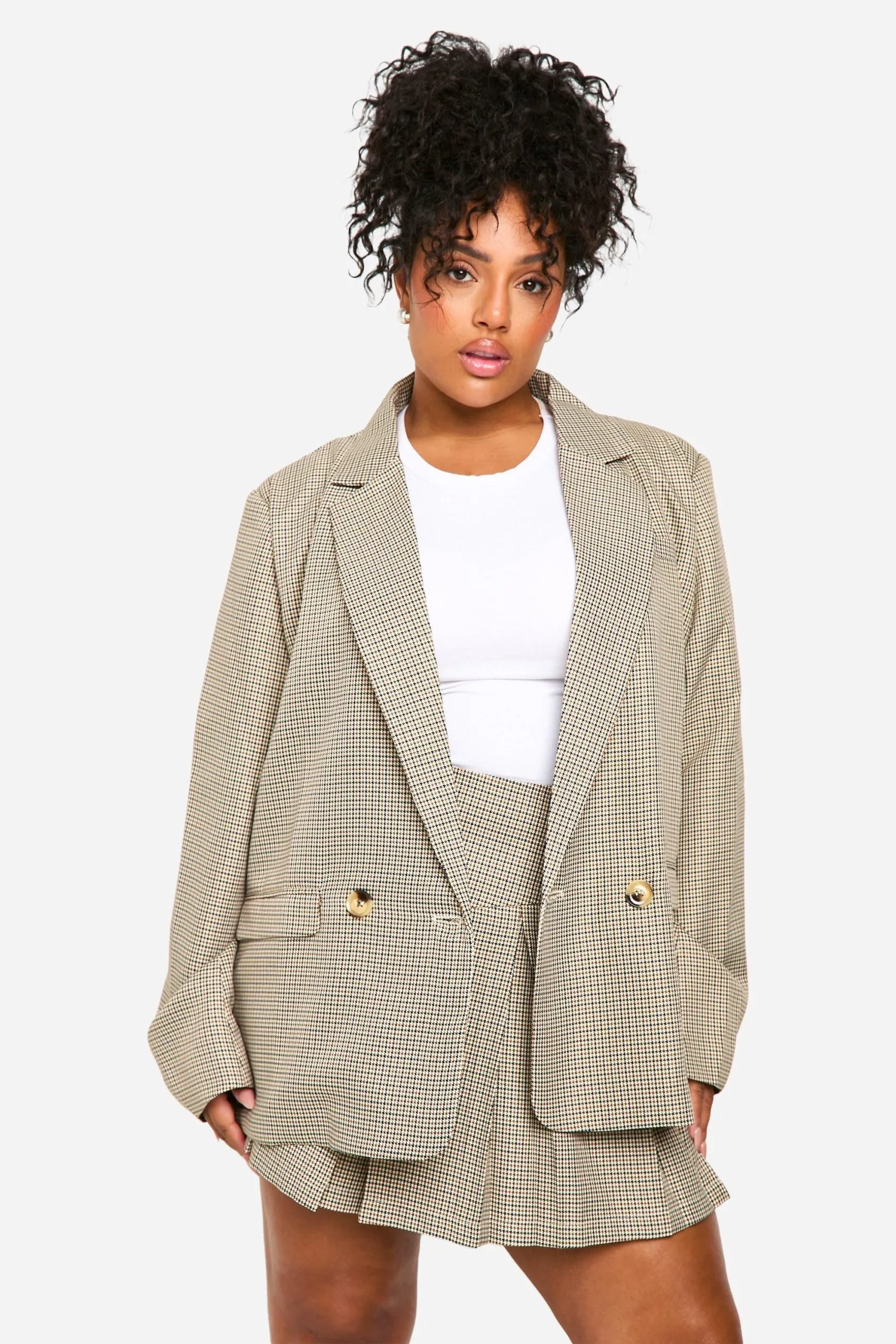 Sale!Plus Tonal Check Double Breasted Oversized Blazer