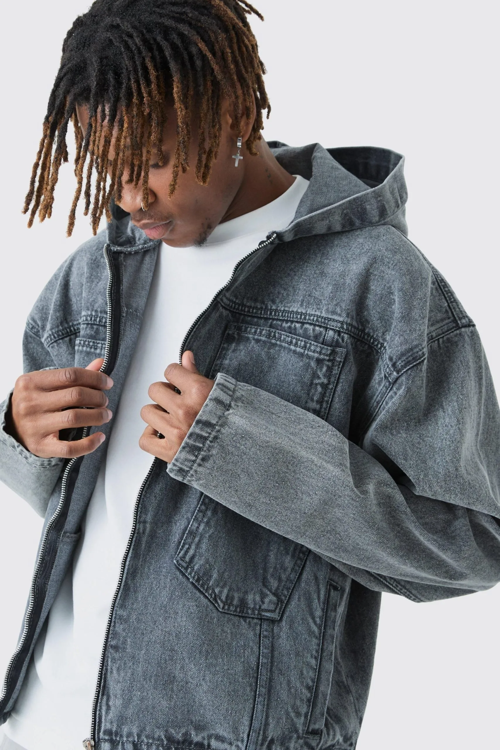 Sale!Tall Regular Fit Denim Acid Wash Hoodie