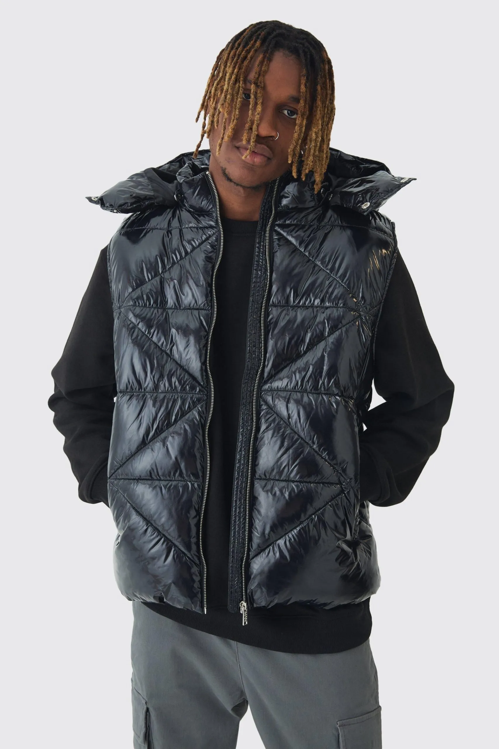 Sale!Tall Quilted High Shine Vinyl Hooded Gilet In Black
