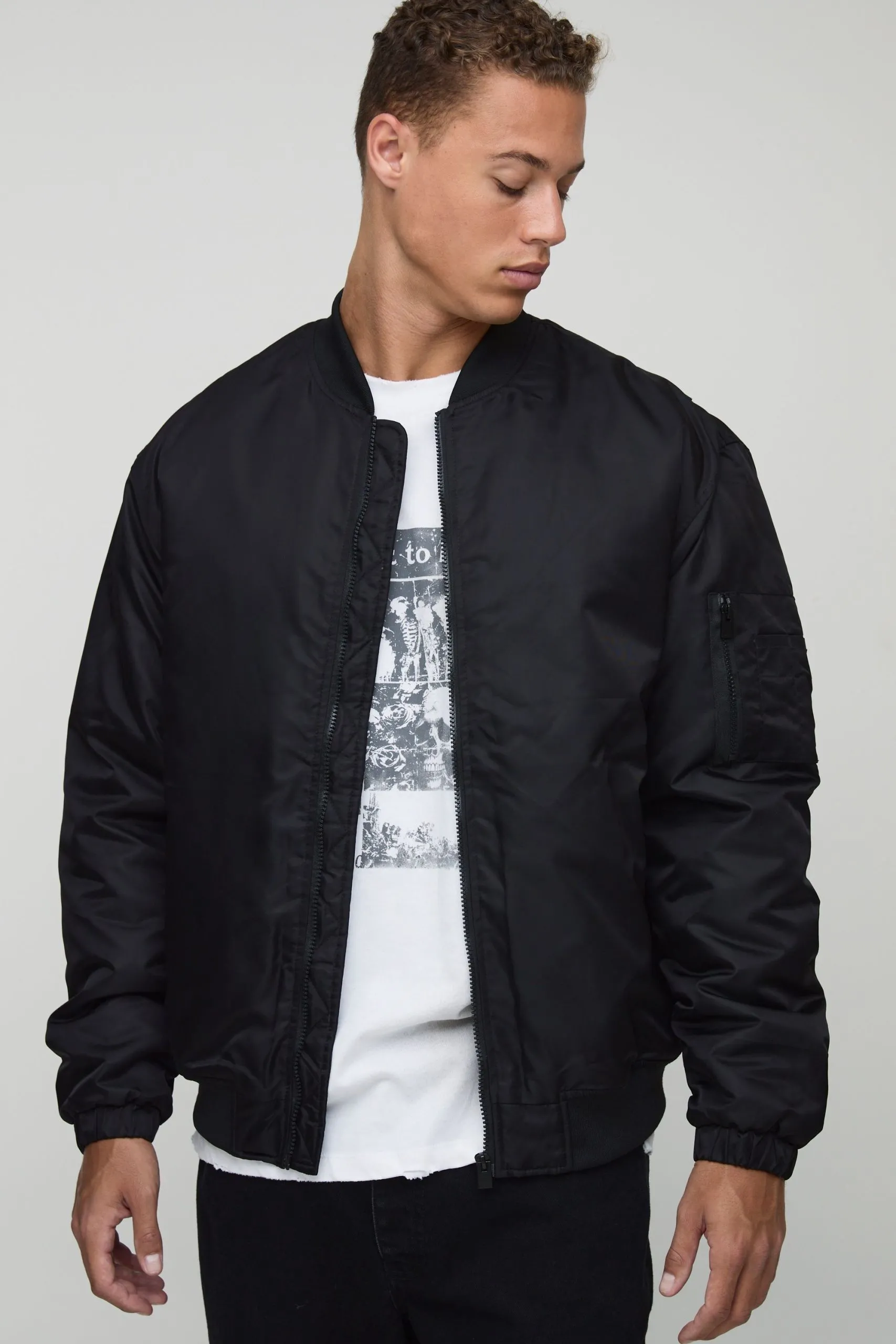 Sale!Tall Regular Fit Padded Nylon Panelled Bomber Jacket In Black