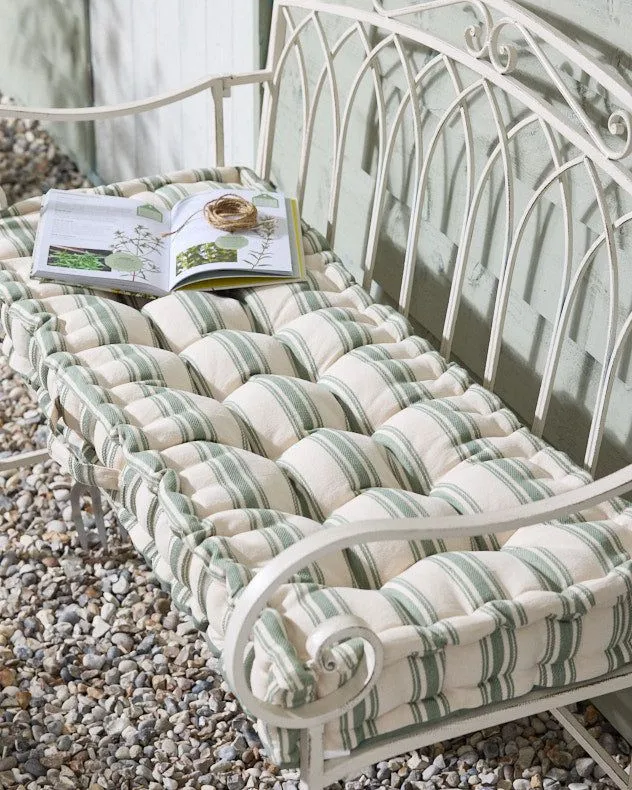 Sale!Forest Green Cotton Stripe Indoor Outdoor Garden Bench Cushion