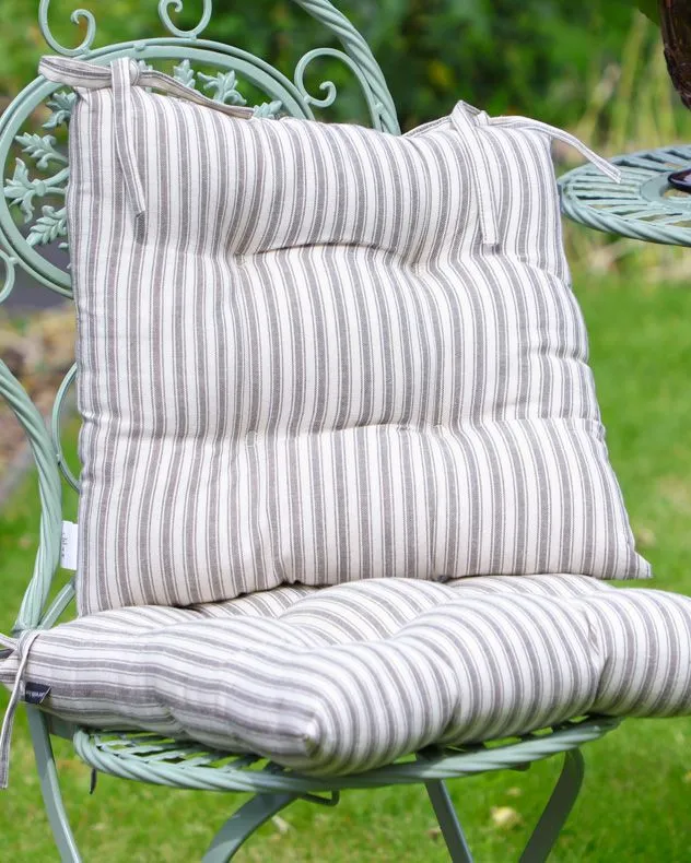 Sale!Set of 2 Grey Striped Outdoor Garden Furniture Seat Pad Cushions (L)40cm x (W)40cm