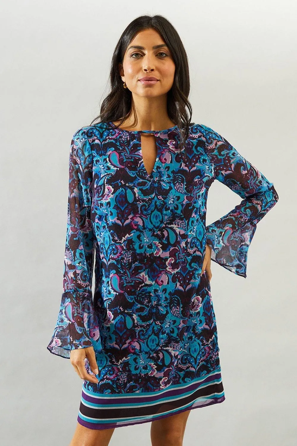 Sale!Abstract Border Keyhole Detail Shift Dress