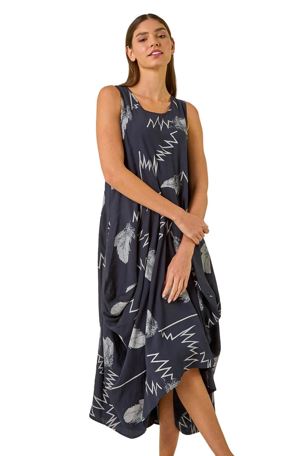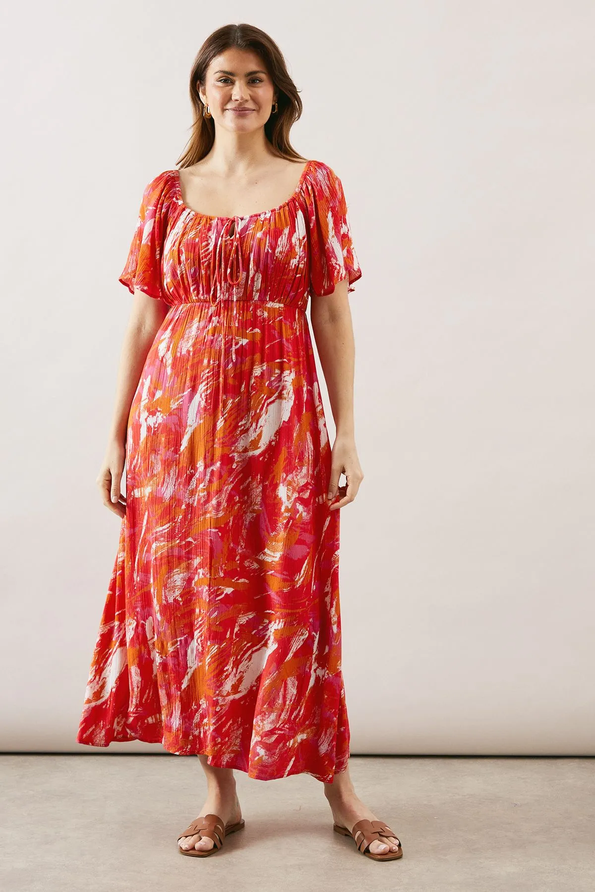 Sale!Abstract Crinkle Viscose Tie Front Midaxi Dress