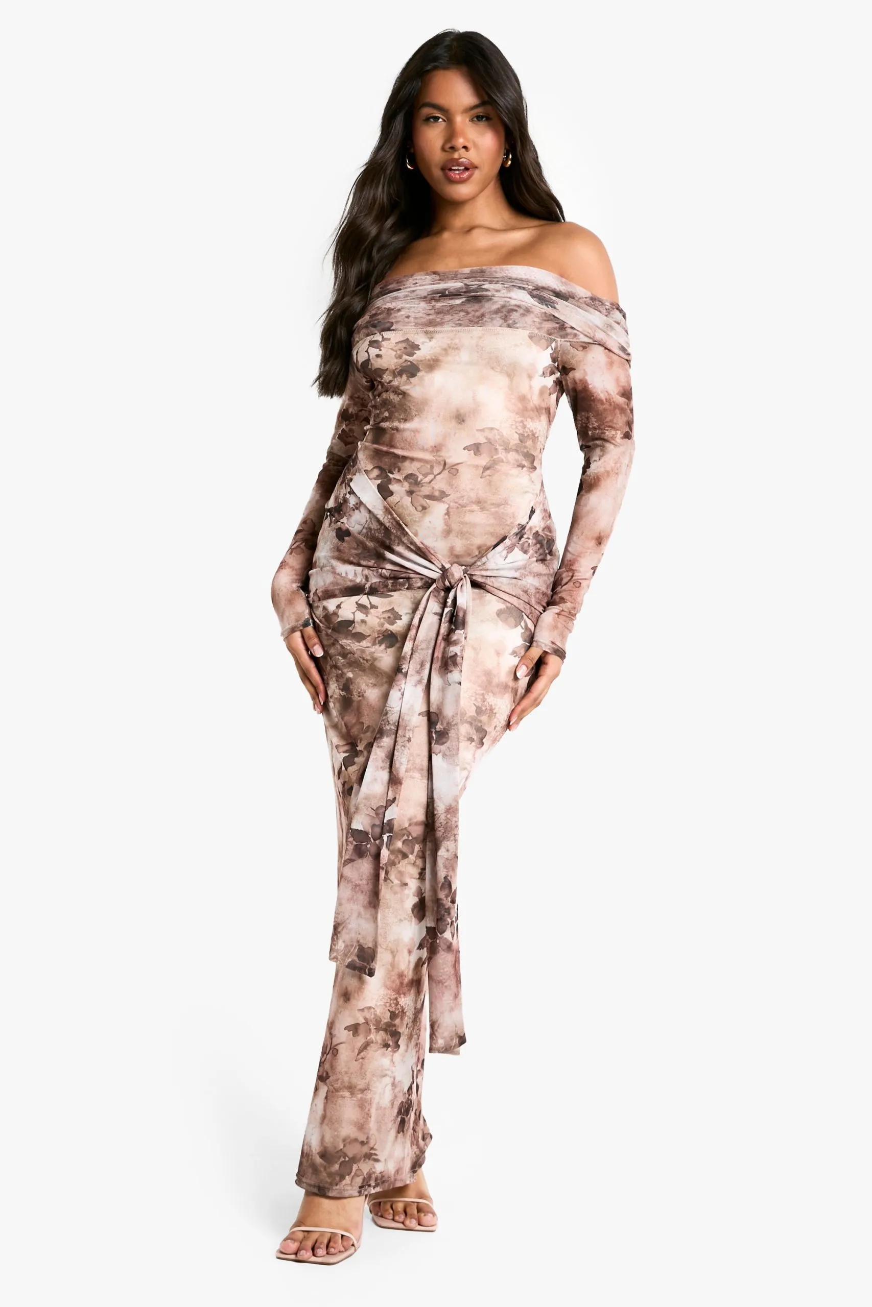 Sale!Abstract Bardot Mesh Long Sleeve Maxi Dress