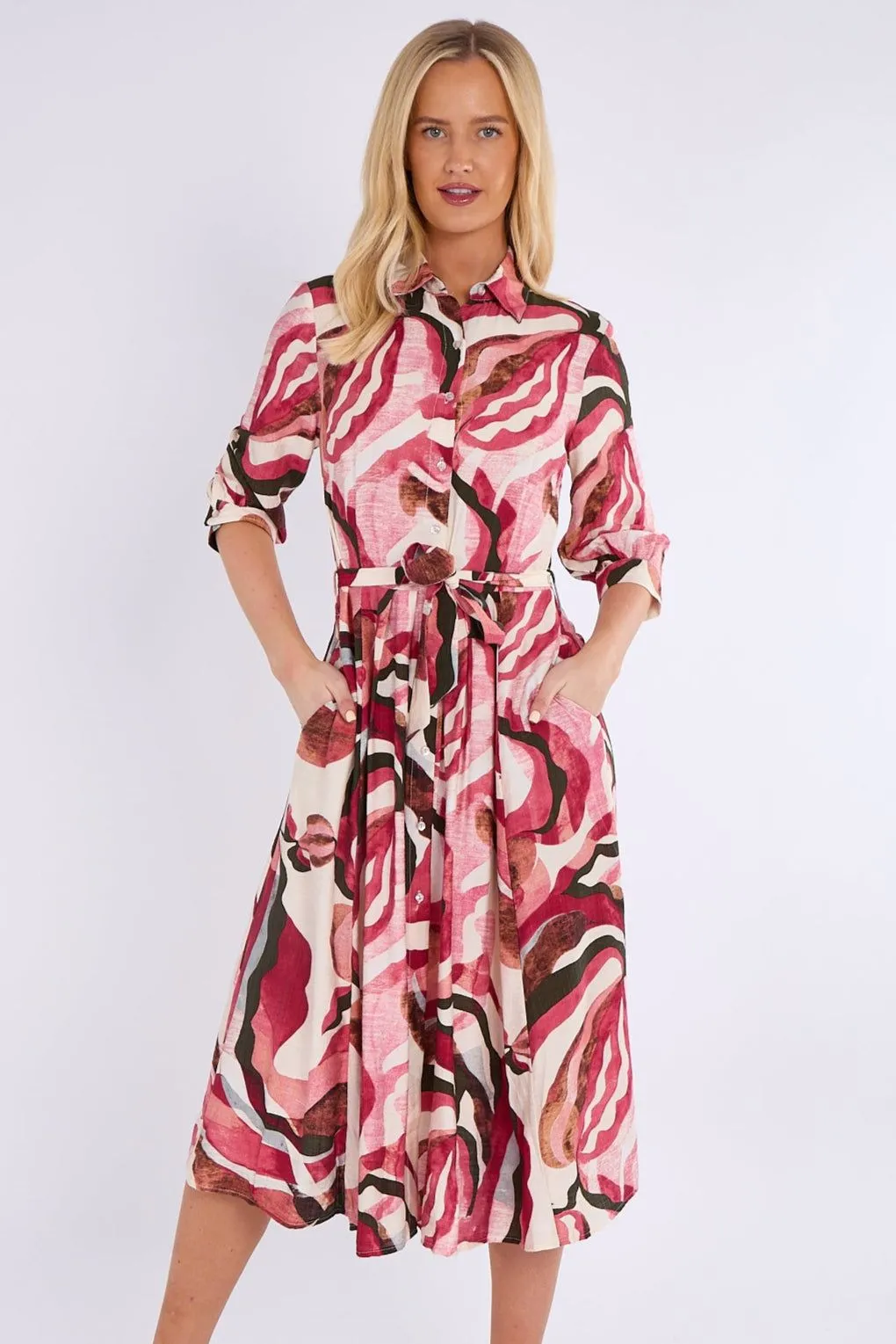 Sale!Berry and Pink Pattern Print Midi Shirt Dress