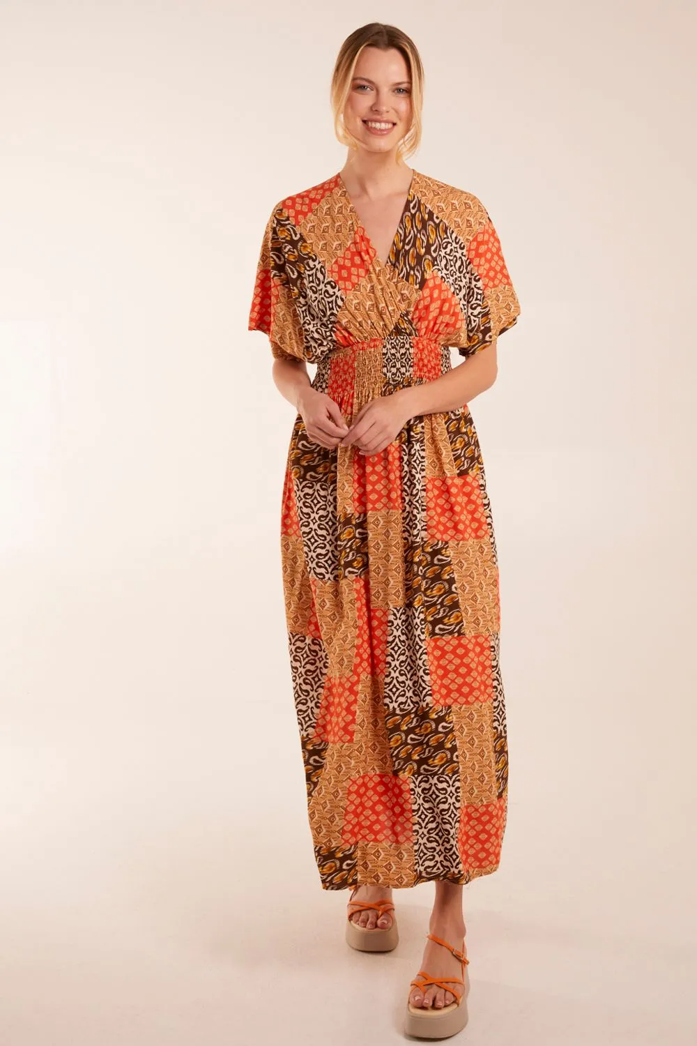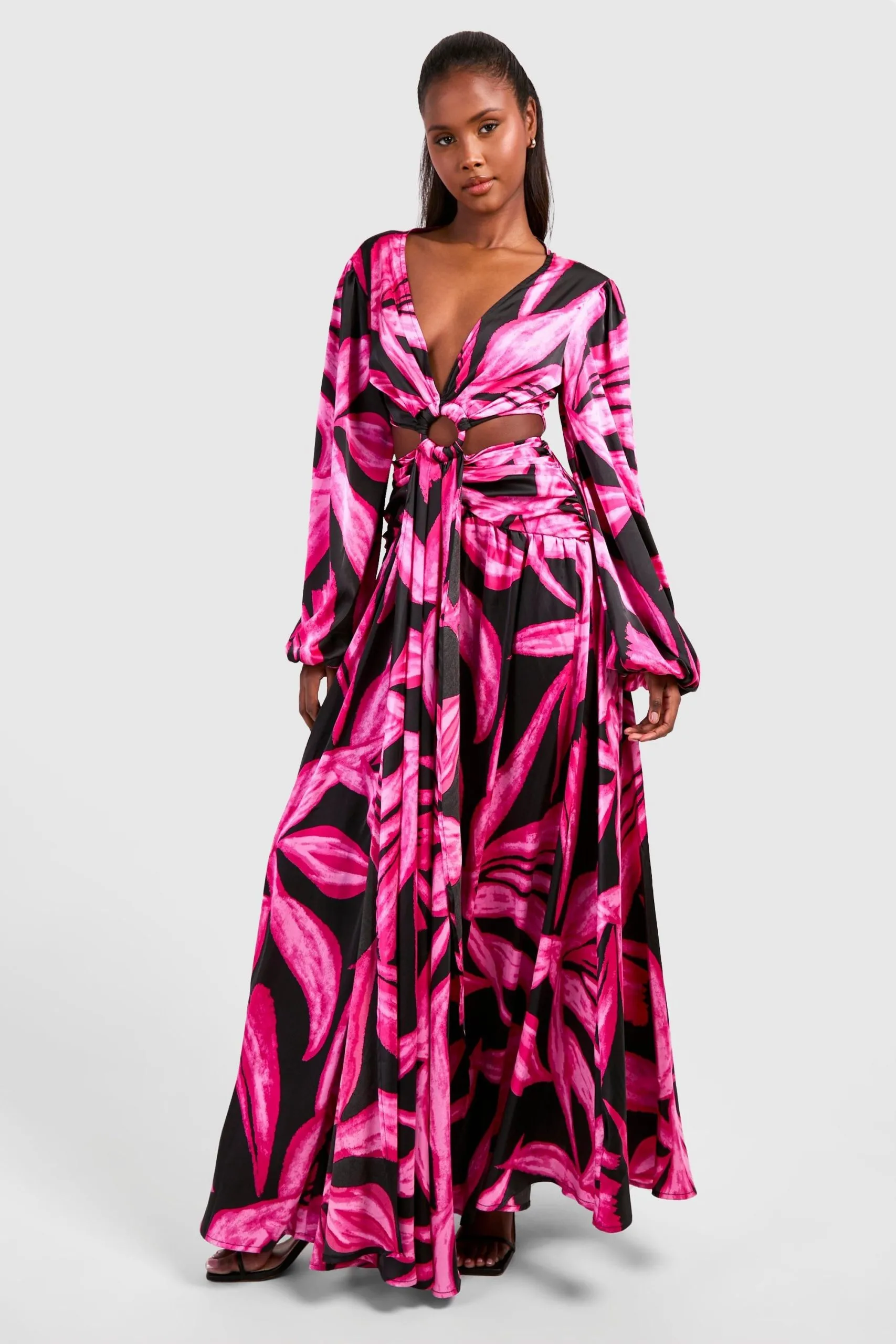 Abstract Print Cut Out Ring Detail Maxi Dress
