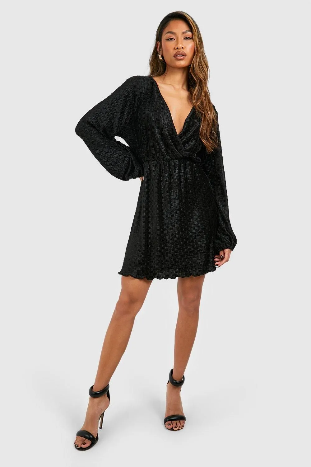Sale!Wave Plisse Rouched Sleeve Midi Dress