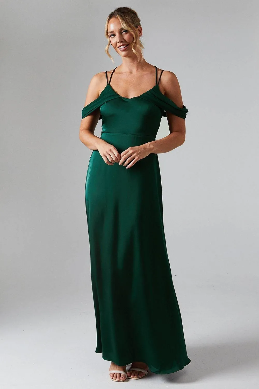 Sale!Wrap Cold Shoulder Strappy Satin Bridesmaid Dress