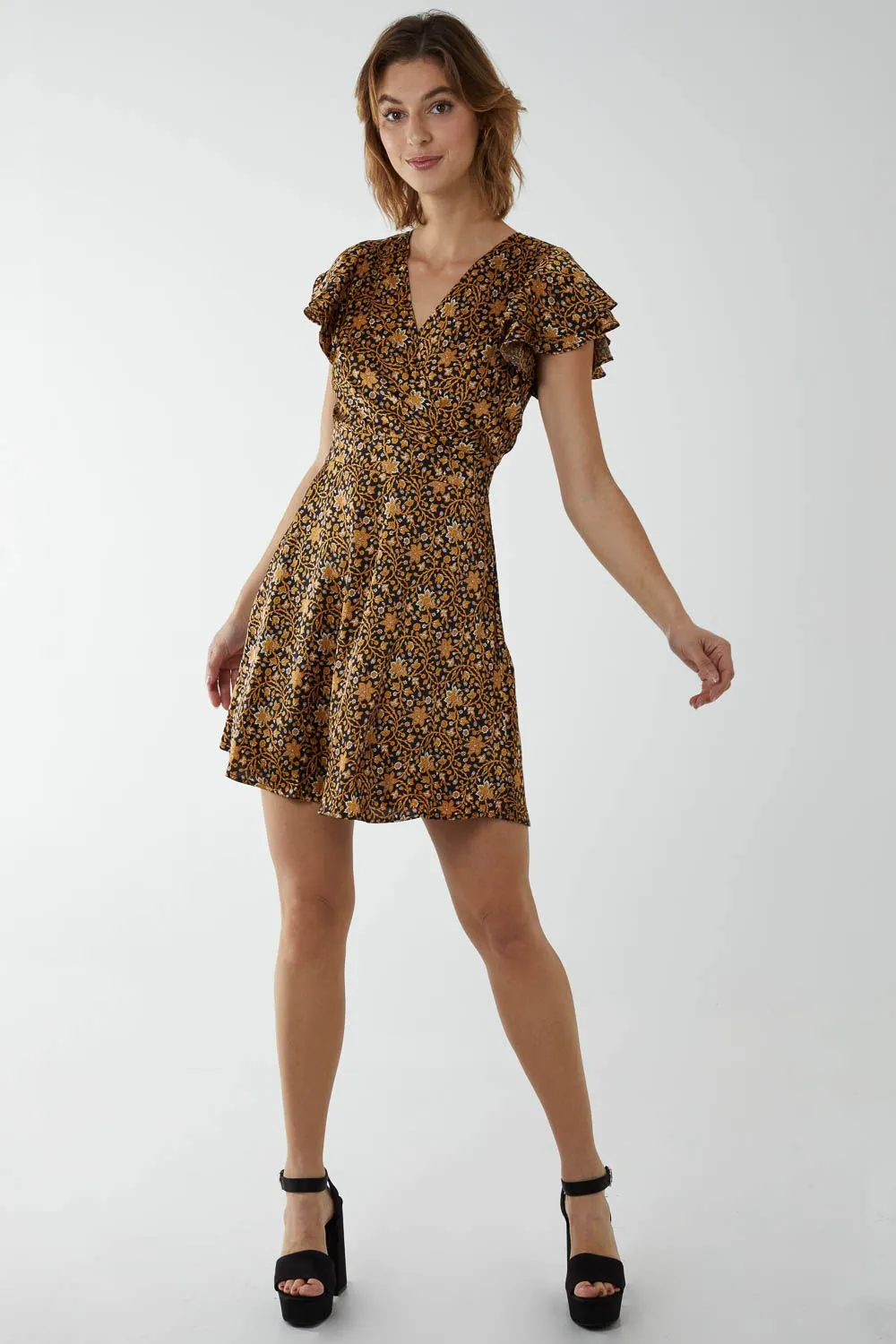 Sale!Wrap Front Maxi With Flutter Sleeves