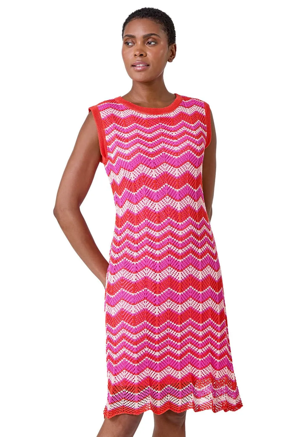 Zig Zag Print Knitted Shift Dress