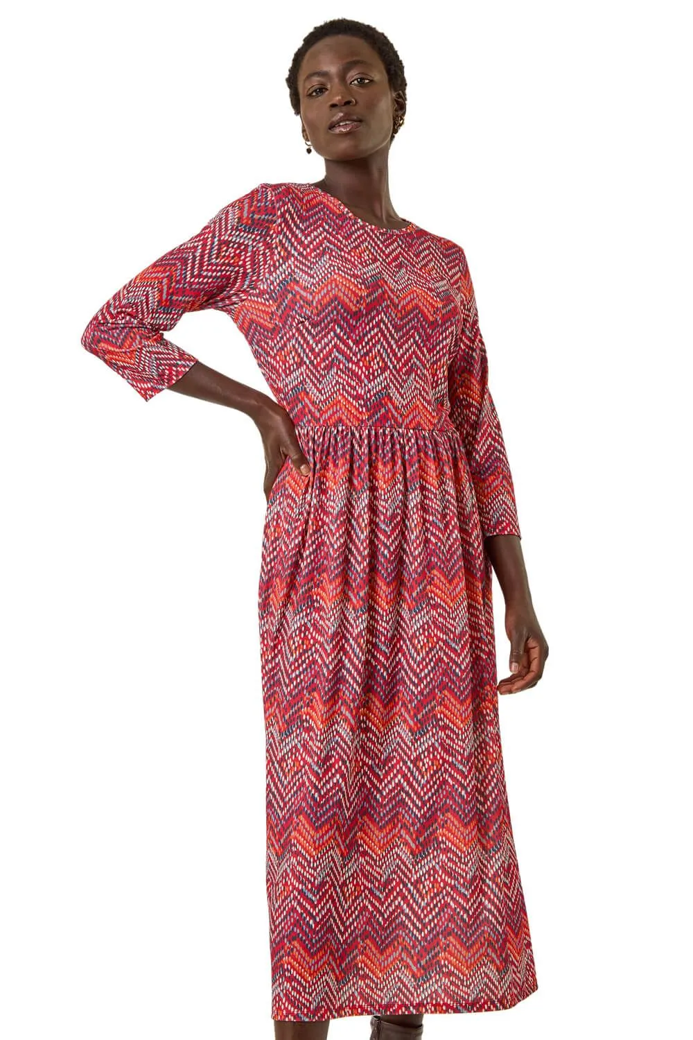 Zig Zag Print Midi Dress