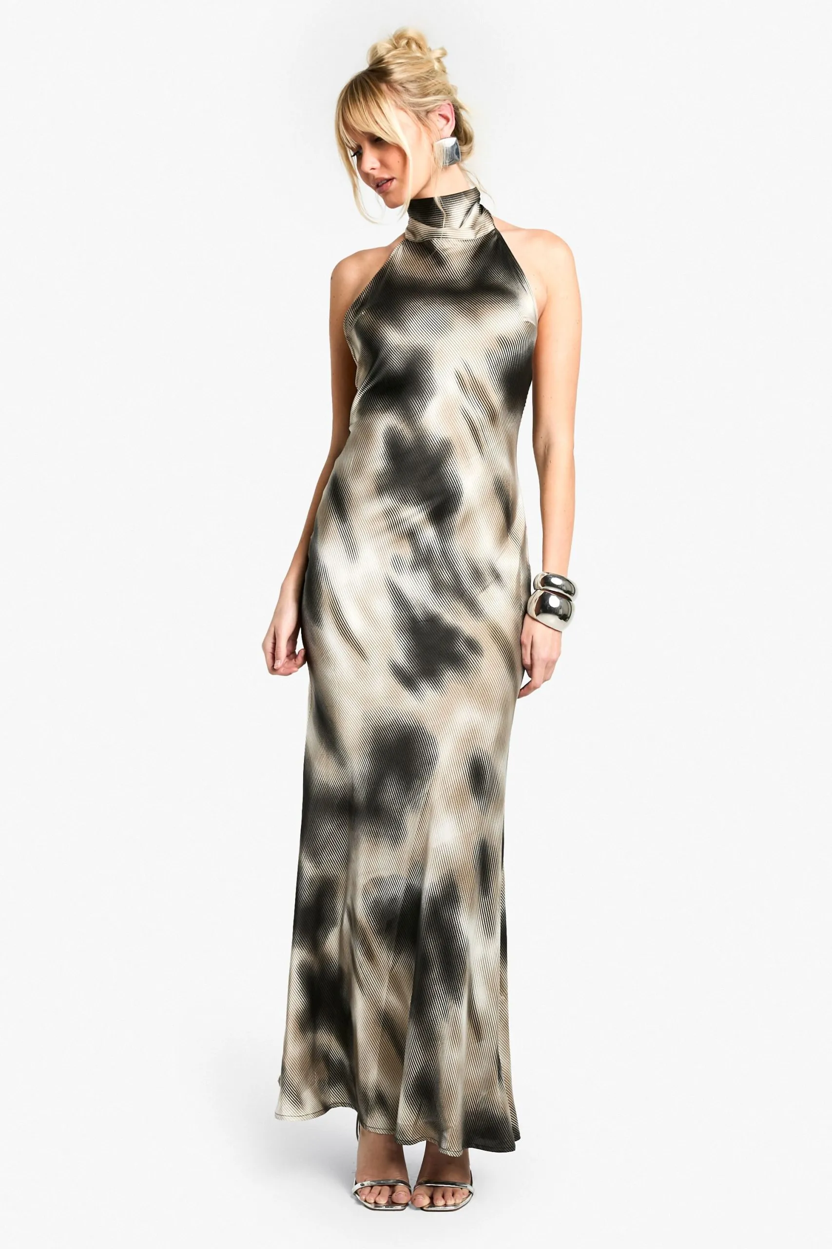 • Blur Stripe Halterneck Maxi Dress