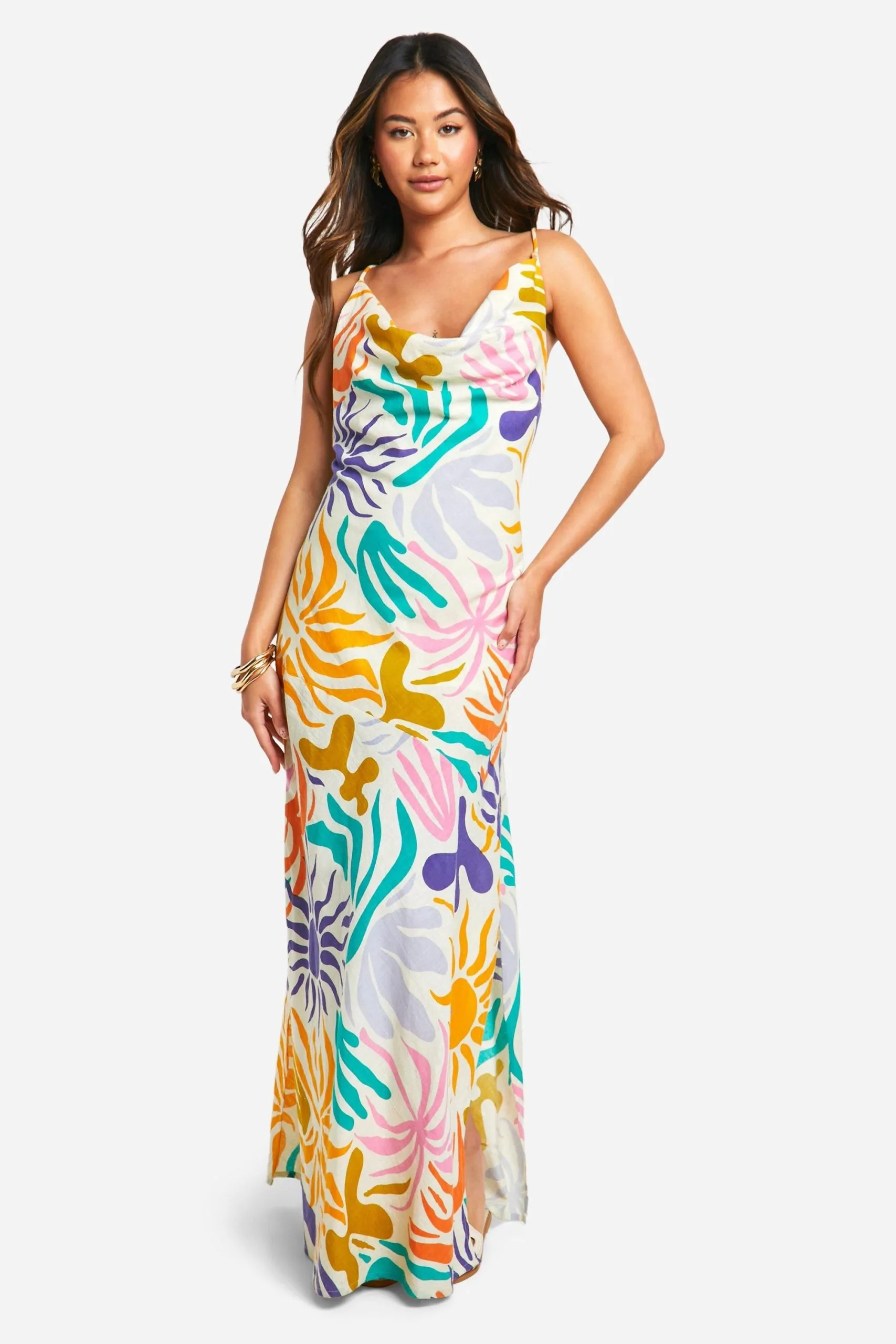 Sale!Bright Cotton Cowl Neck Maxi Dress