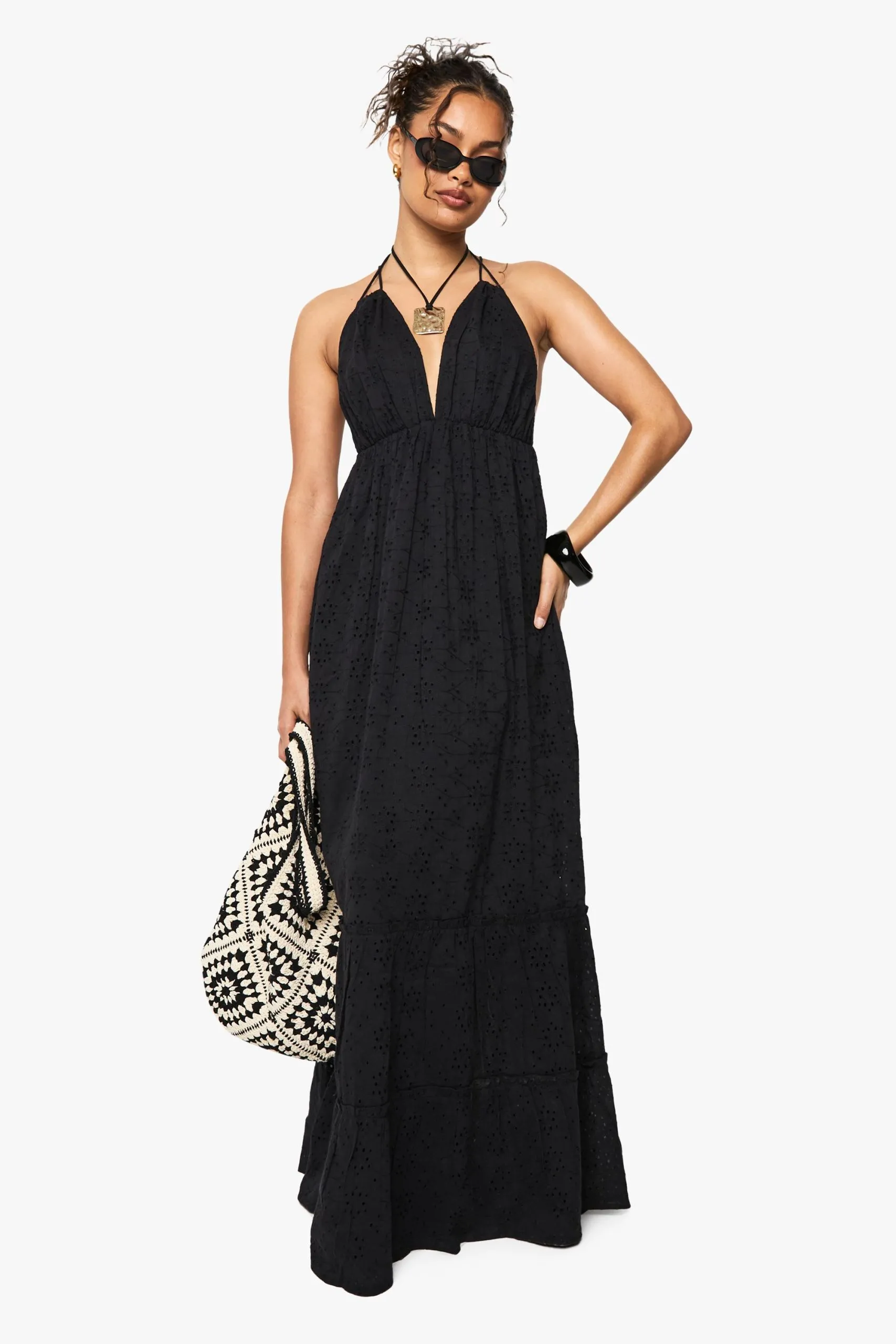 Sale!Broderie Anglaise Halter neck Maxi Dress