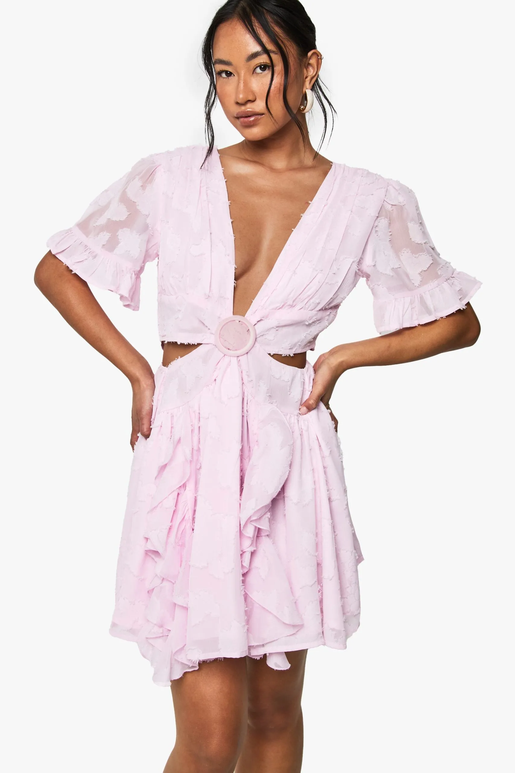 Sale!Burnout Floral Angel Sleeve Skater Dress