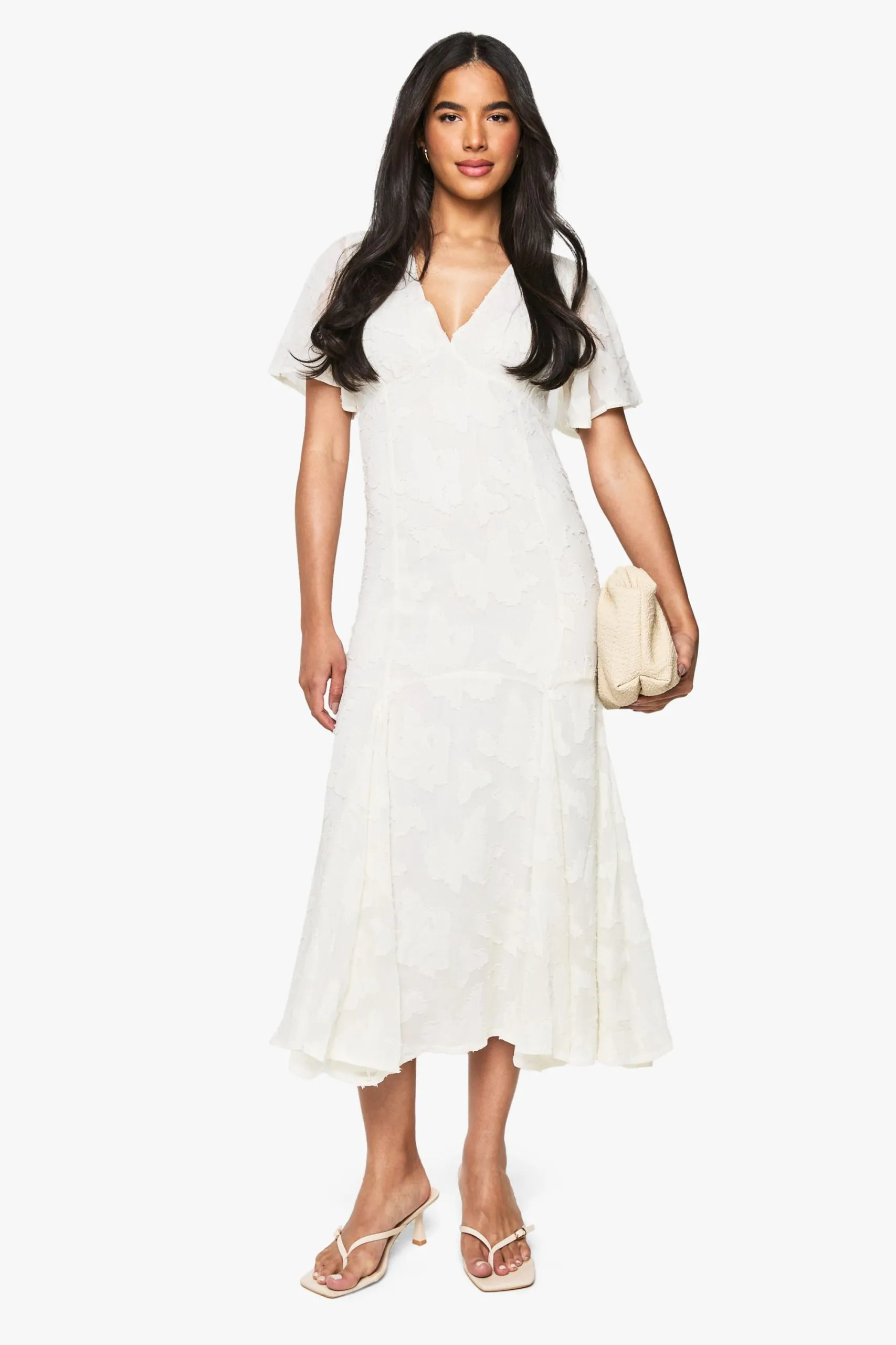 Sale!Burnout Floral Angel Sleeve Midaxi Dress