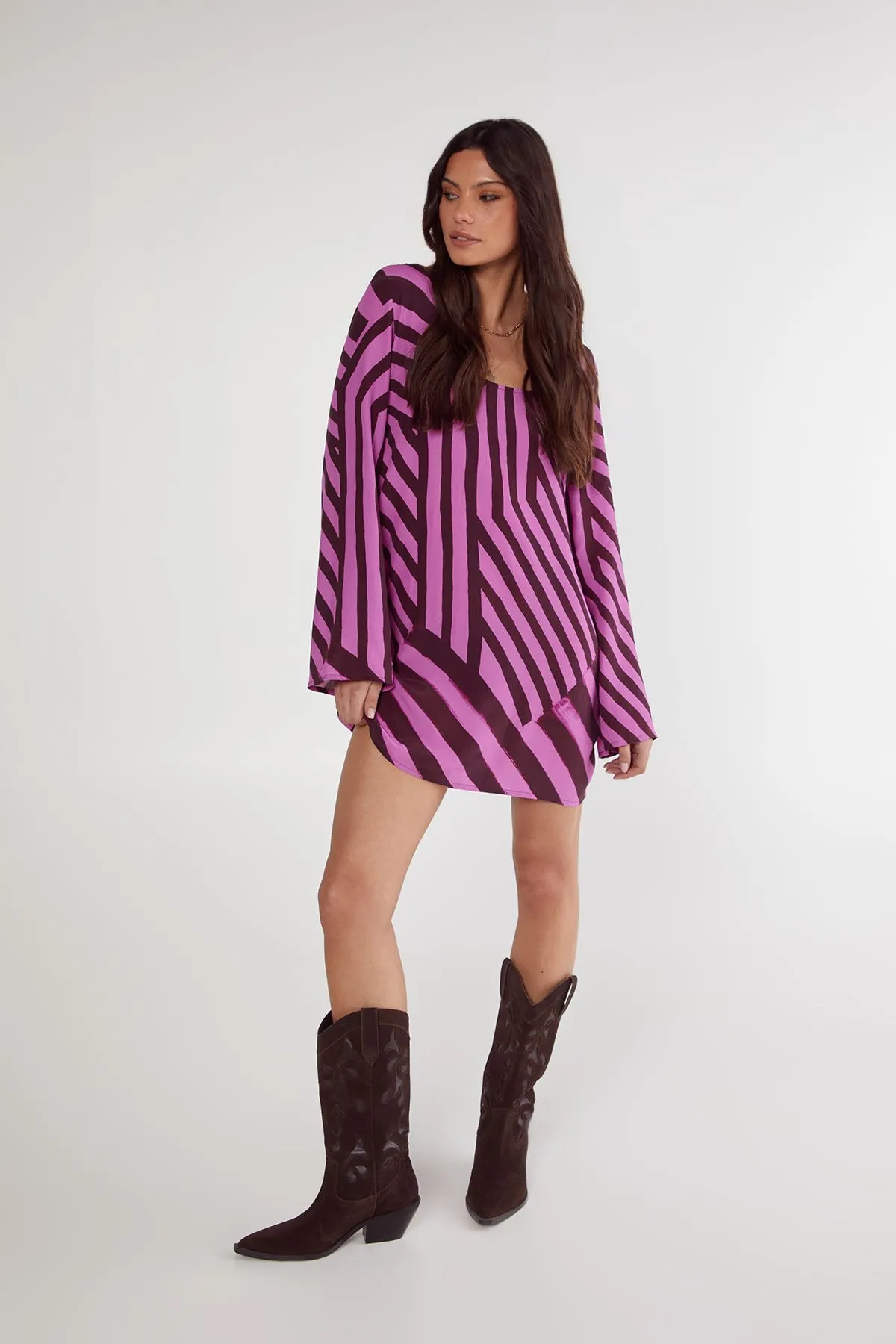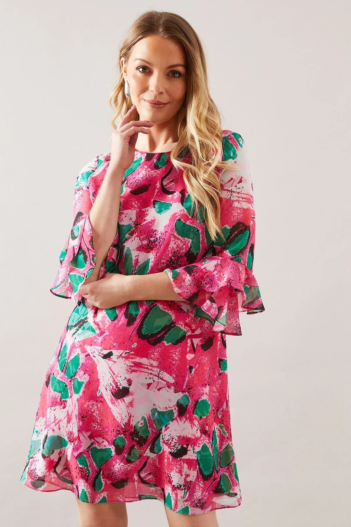 Sale!Abstract Ruffle Sleeve Chiffon Shift Dress