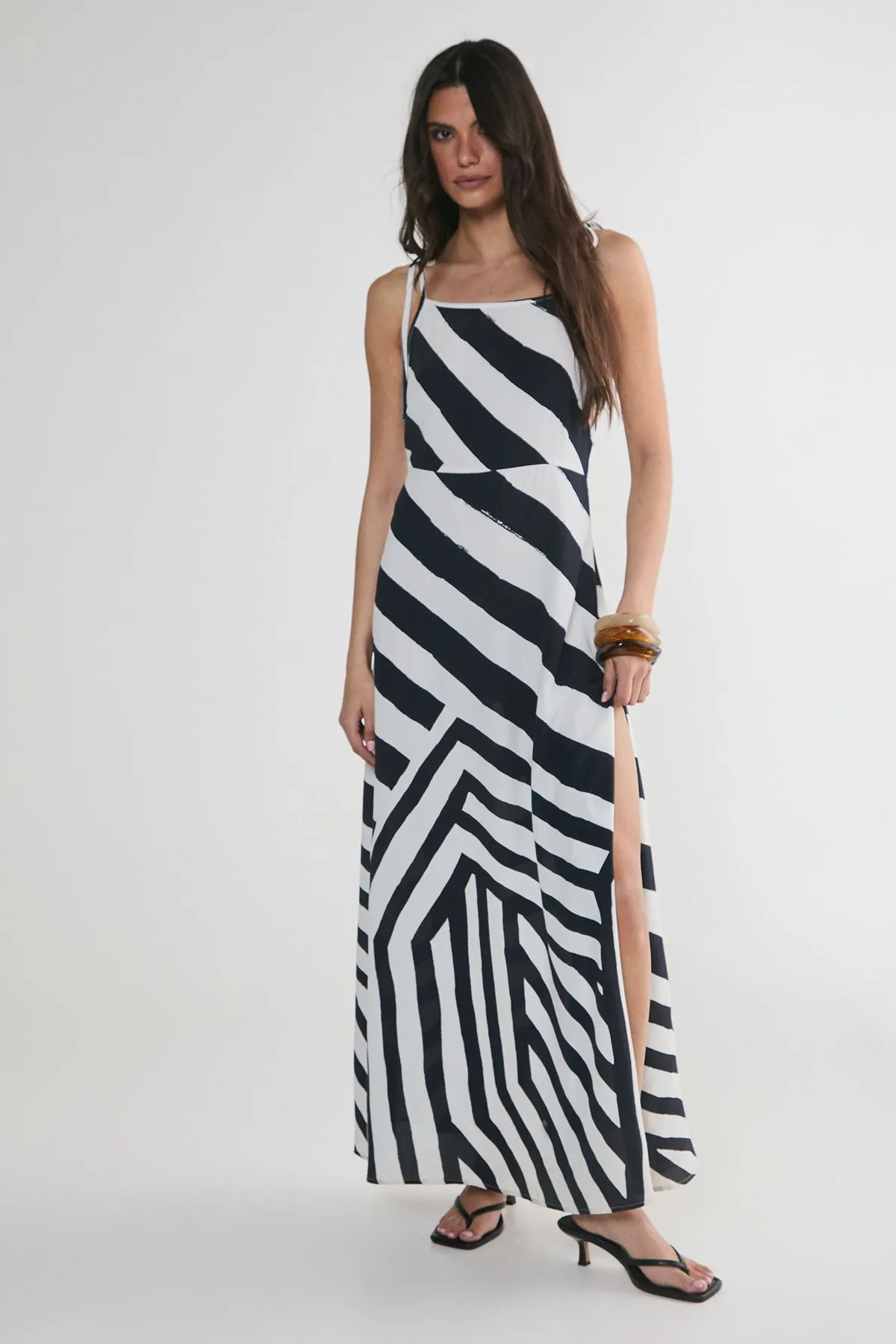 Sale!Abstract Stripe Tie Shoulder Split Leg Maxi Dress