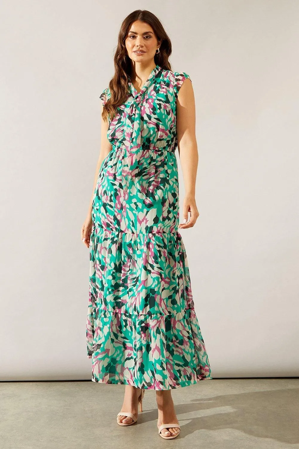 Sale!Abstract Tie Neck Tiered Maxi Dress